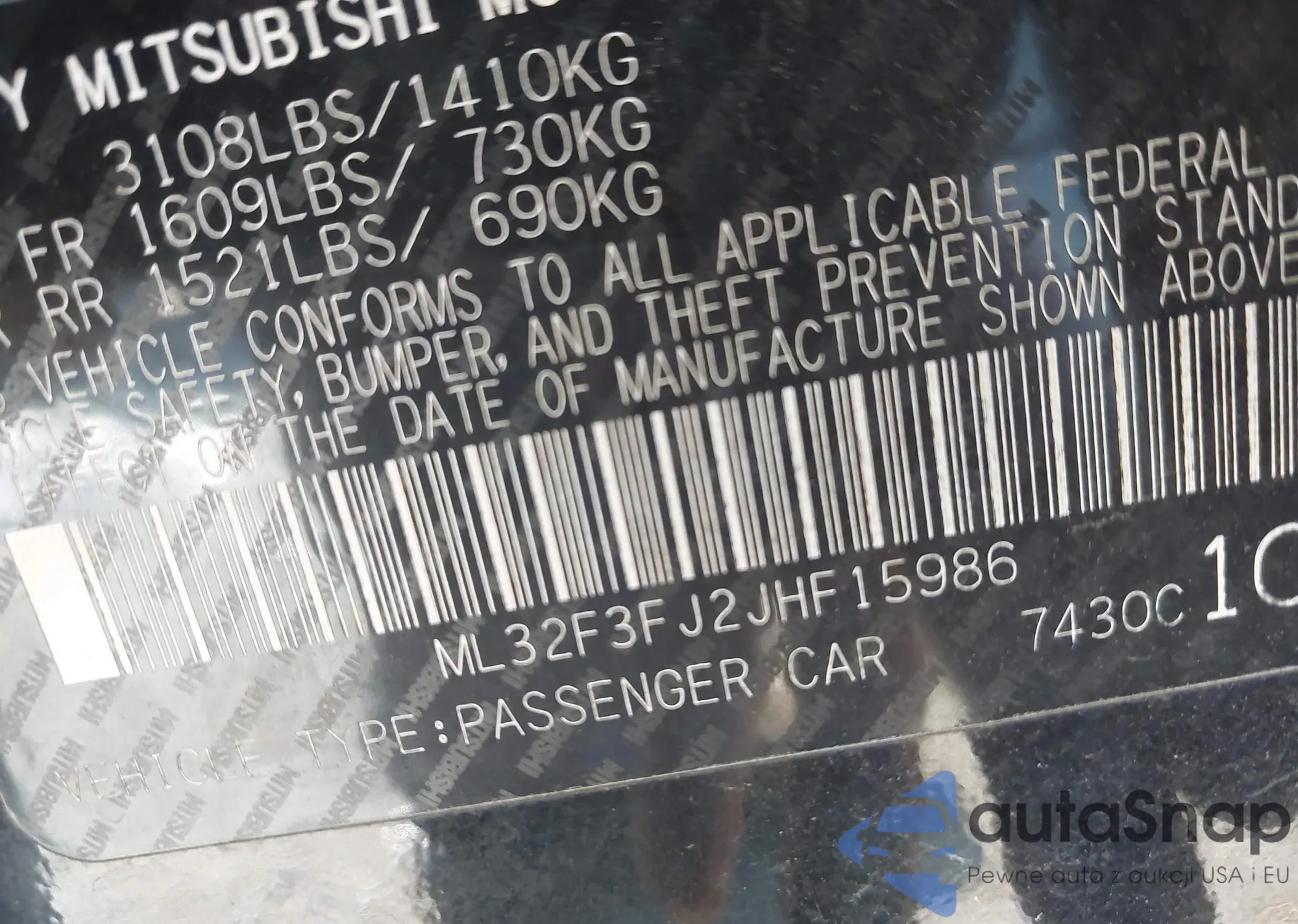 LOT: 44570700 VIN: ML32F3FJ9JHF14866
