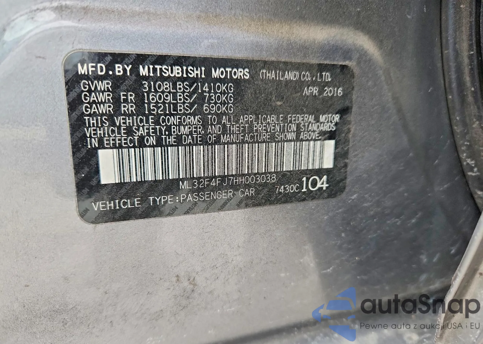 • VIN ML32F4FJ7HH003038
