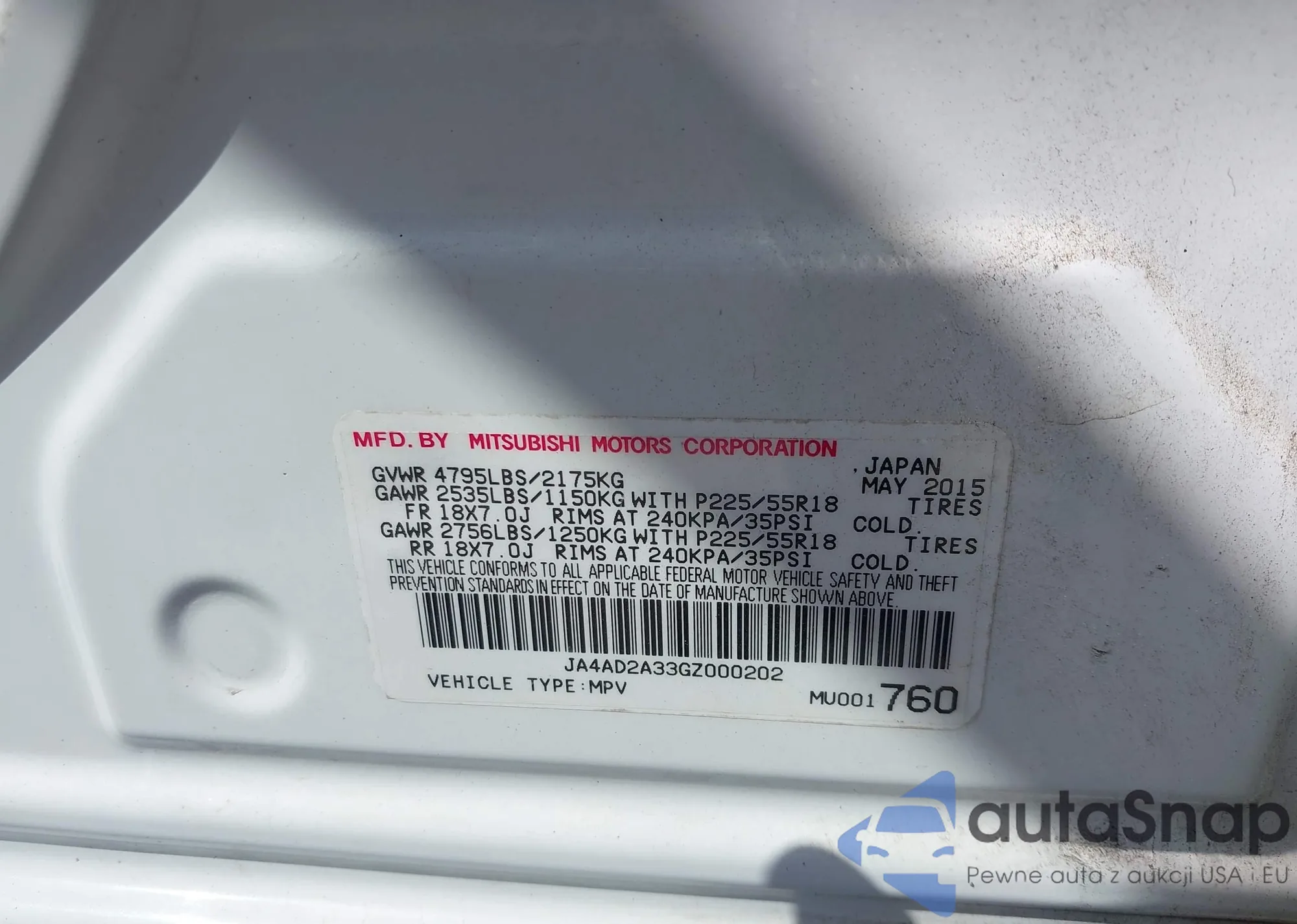 • VIN JA4AR4AW6GZ023352
