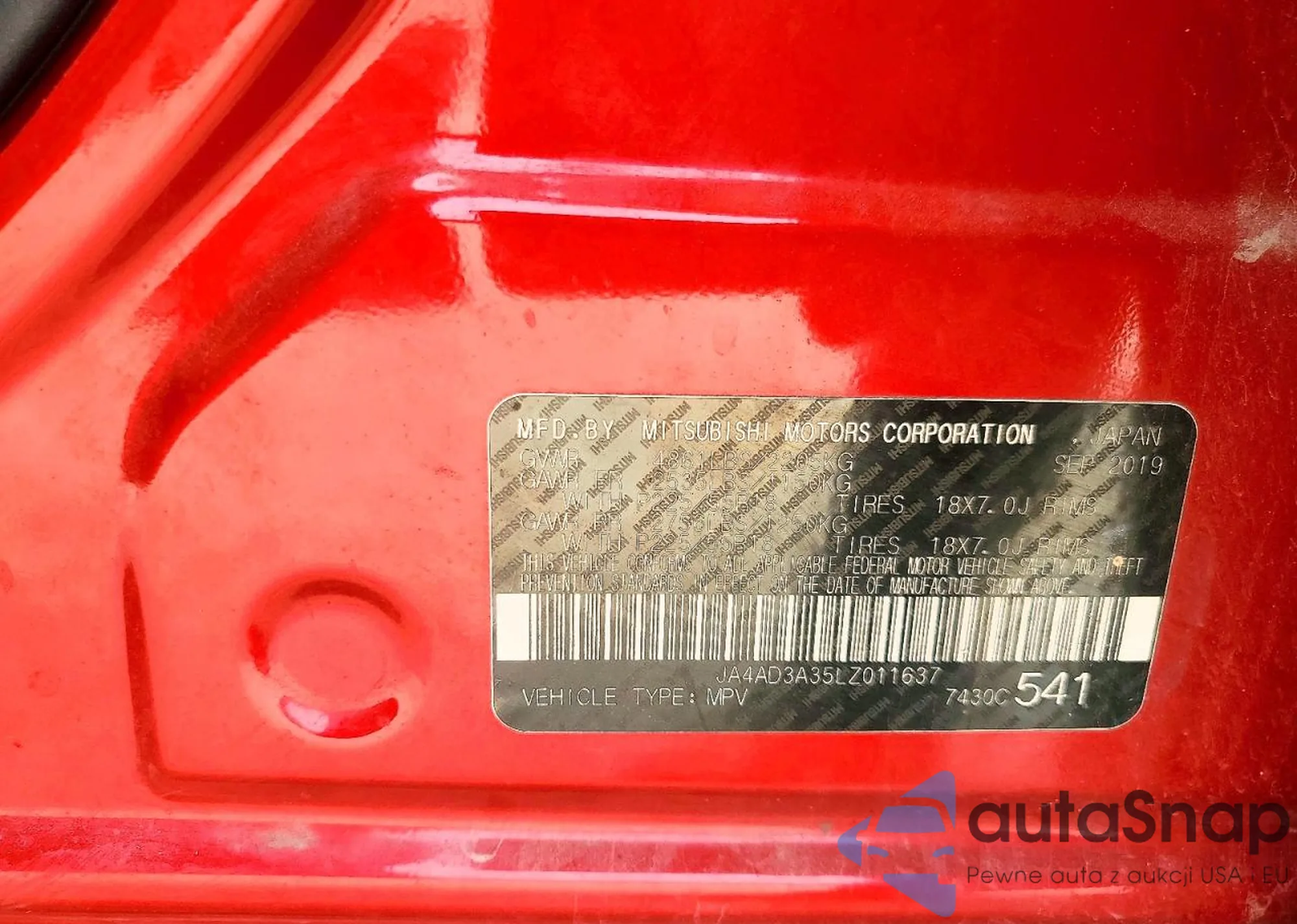 LOT: 79046065 VIN: JA4AP3AU3KU020316