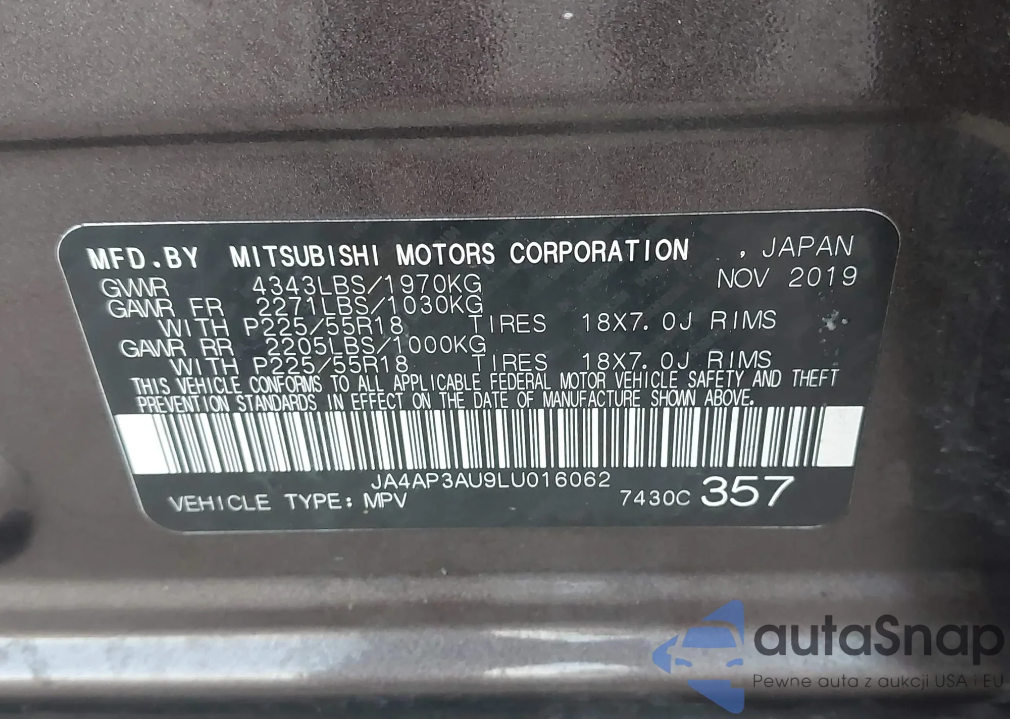 LOT: 44060493 VIN: JA4AP3AU9LU016062