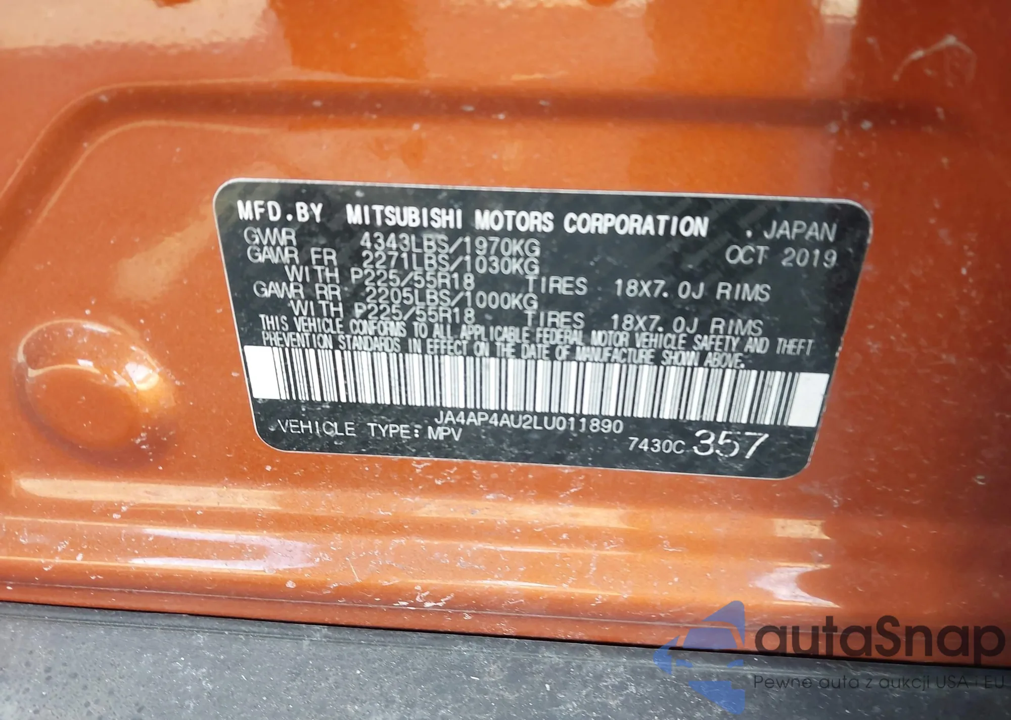 LOT: 44149574 VIN: JA4AP4AU2LU011890