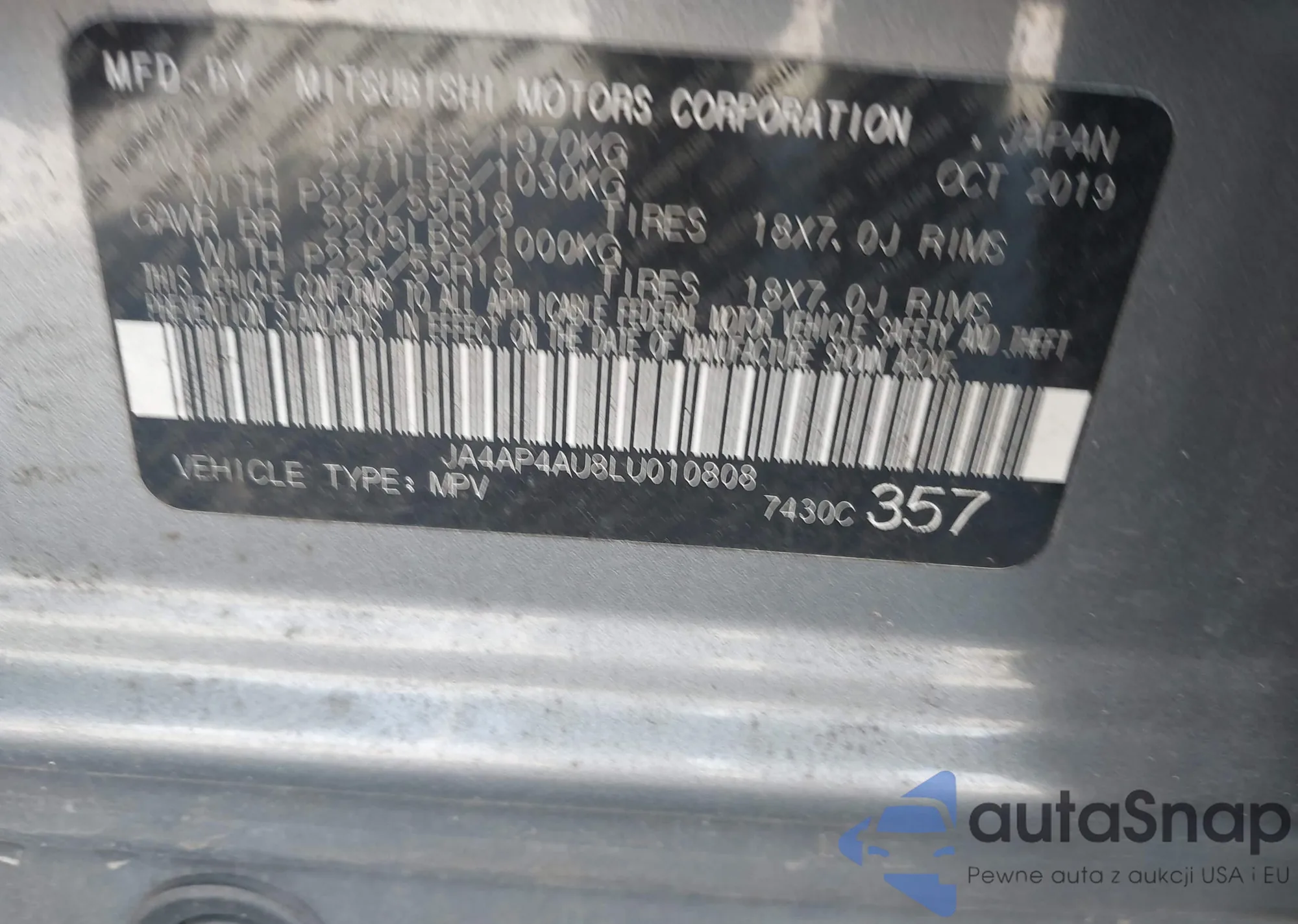 LOT: 44149133 VIN: JA4AP4AU8LU010808