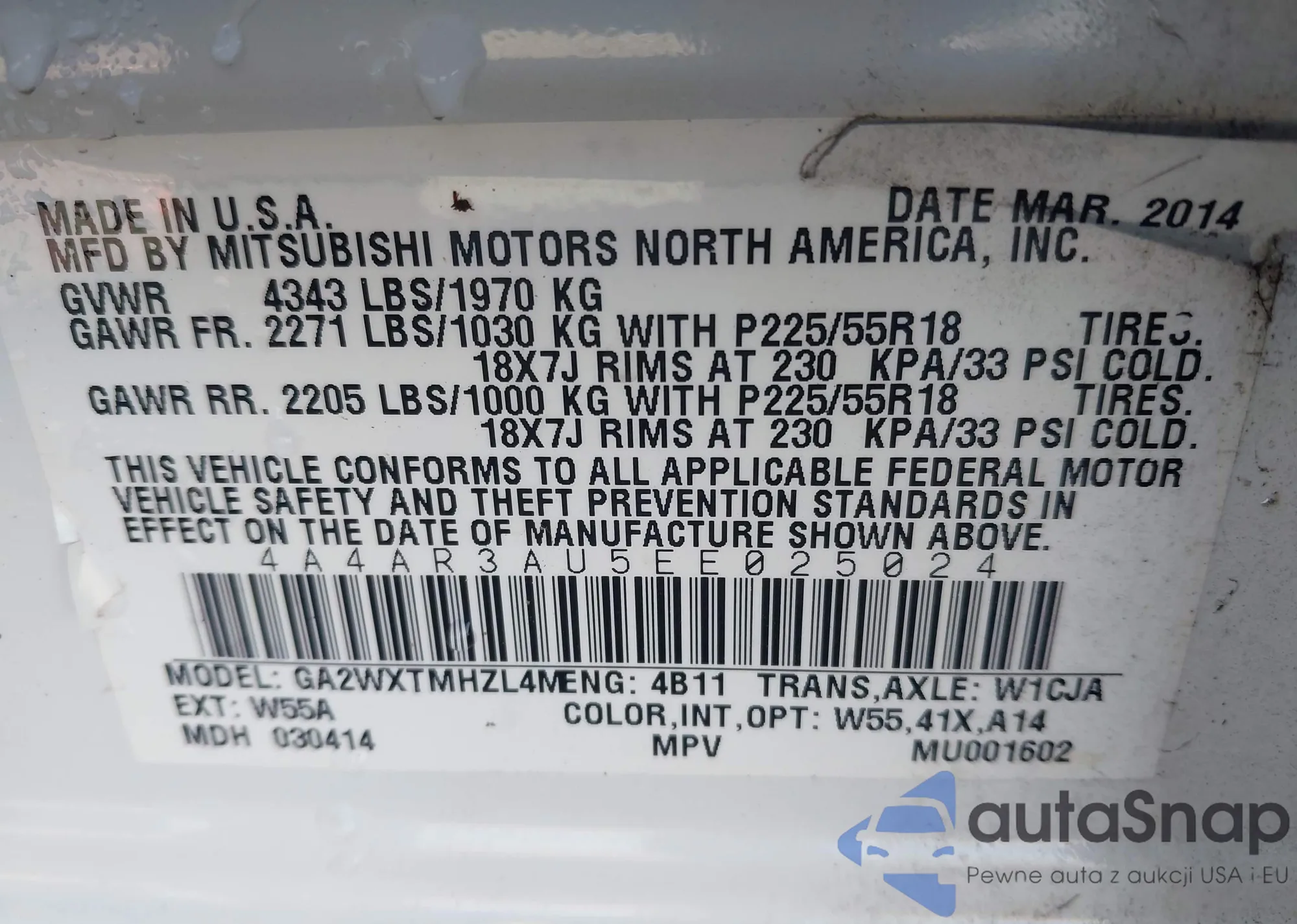 LOT: 44174408 VIN: 4A4AR3AU5EE025024