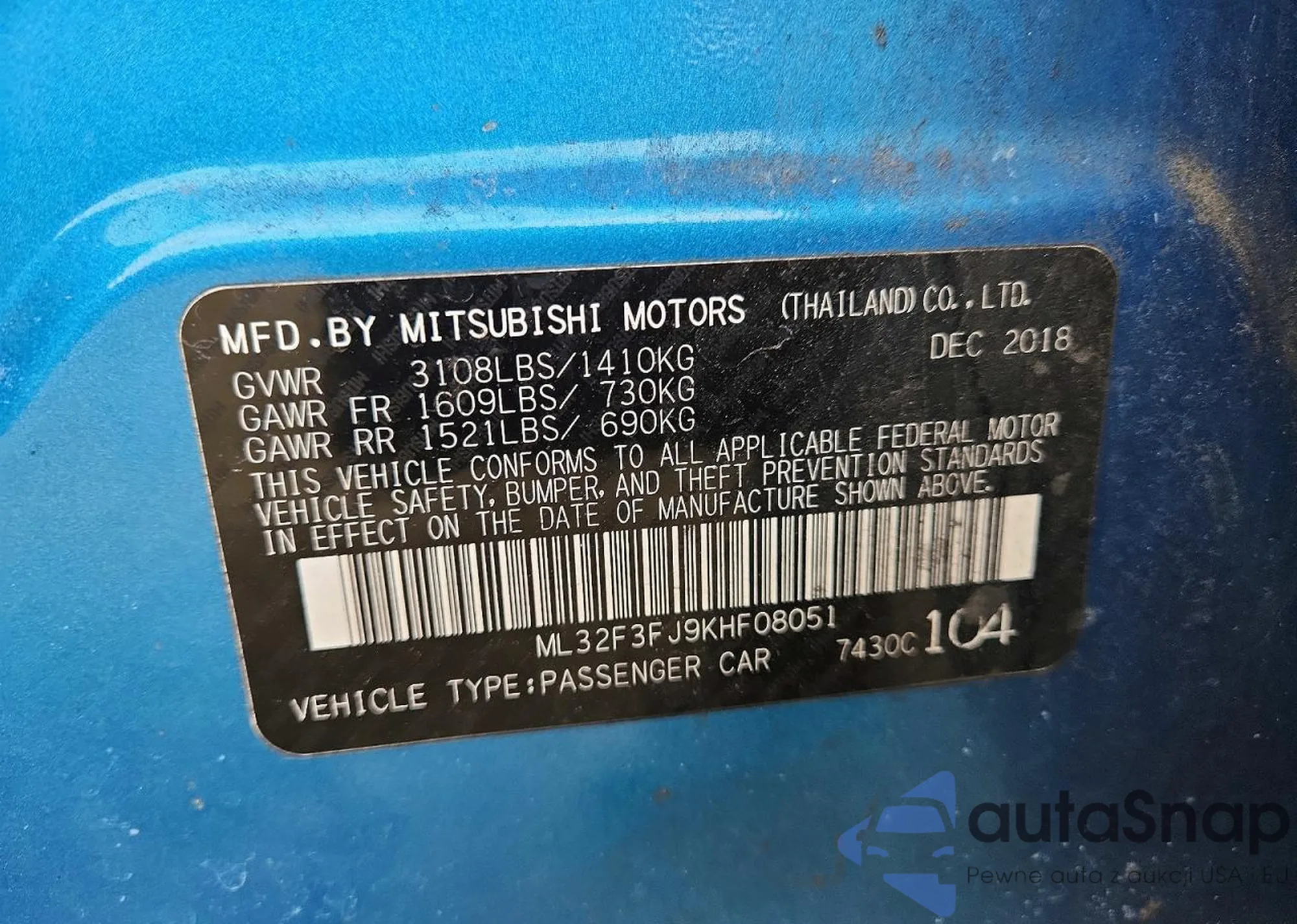 LOT: 76439265 VIN: ML32F3FJ9KHF08051