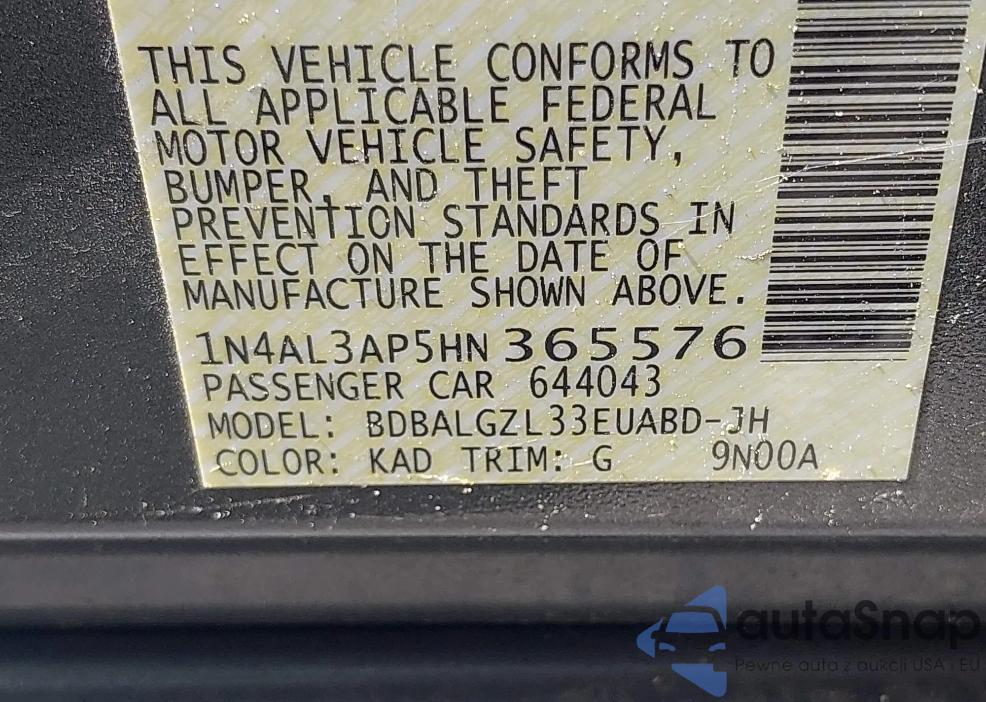 LOT: 40279589 VIN: 1N4AL3AP5HN365576