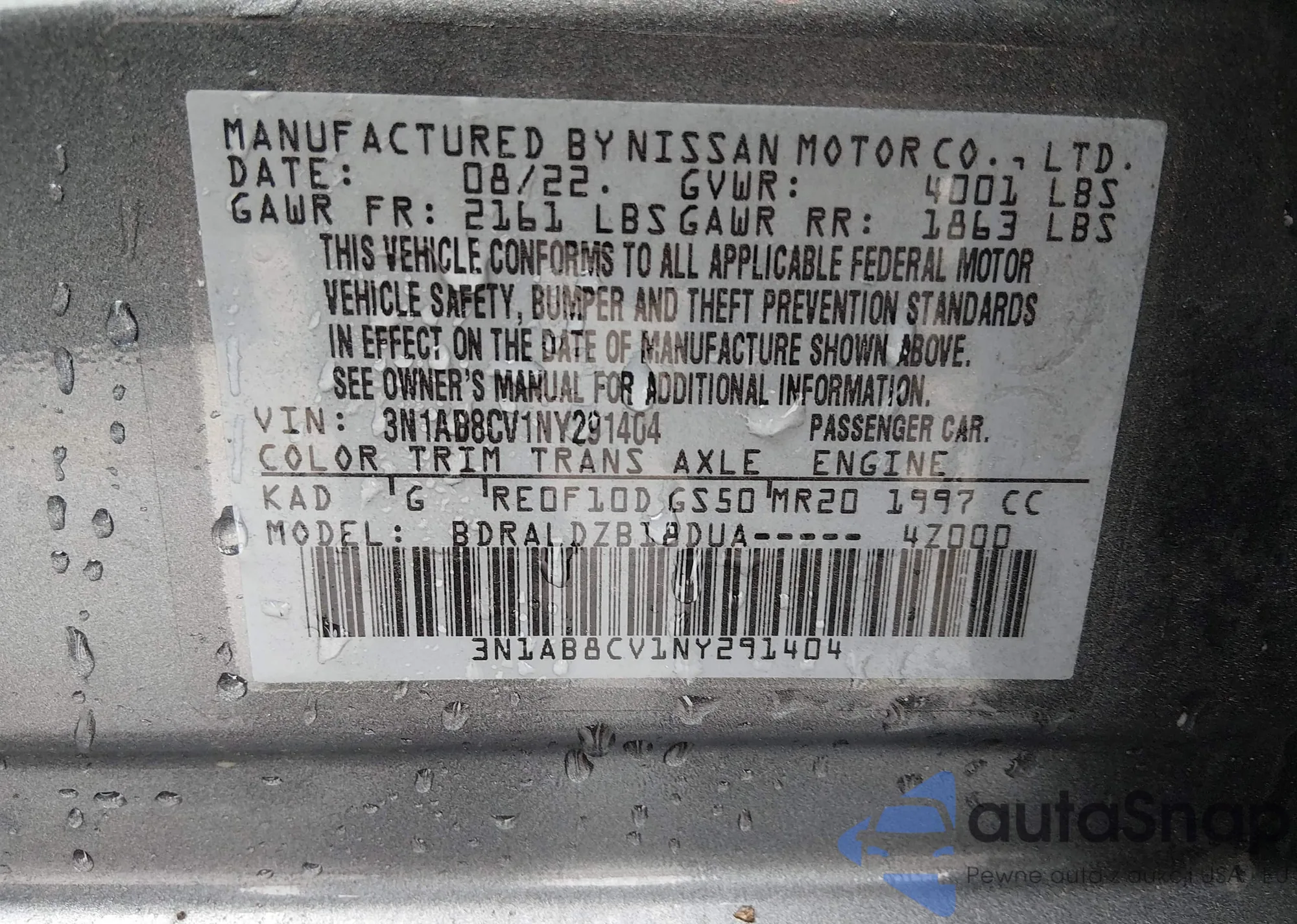 • VIN 3N1AB8CV1NY291404