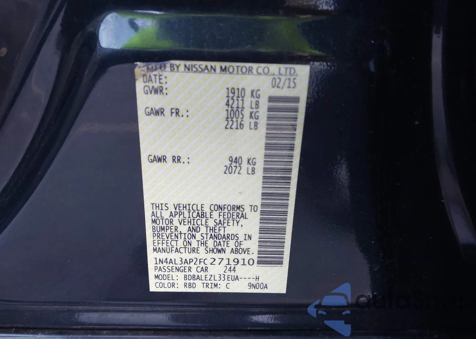 LOT: 43984300 VIN: 1N4AL3AP2FC271910