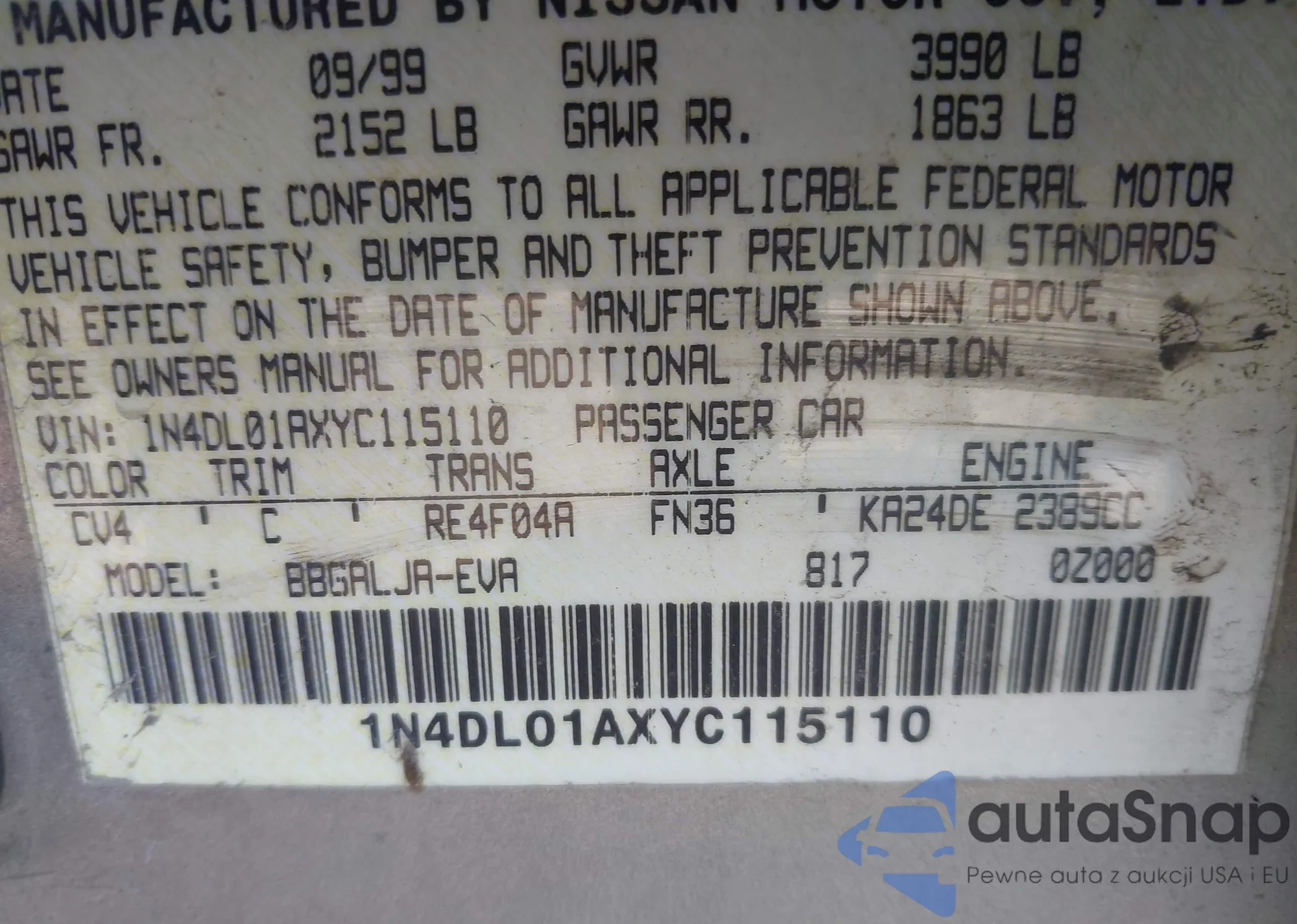 Kup Nissan Altima II (L30) z USA