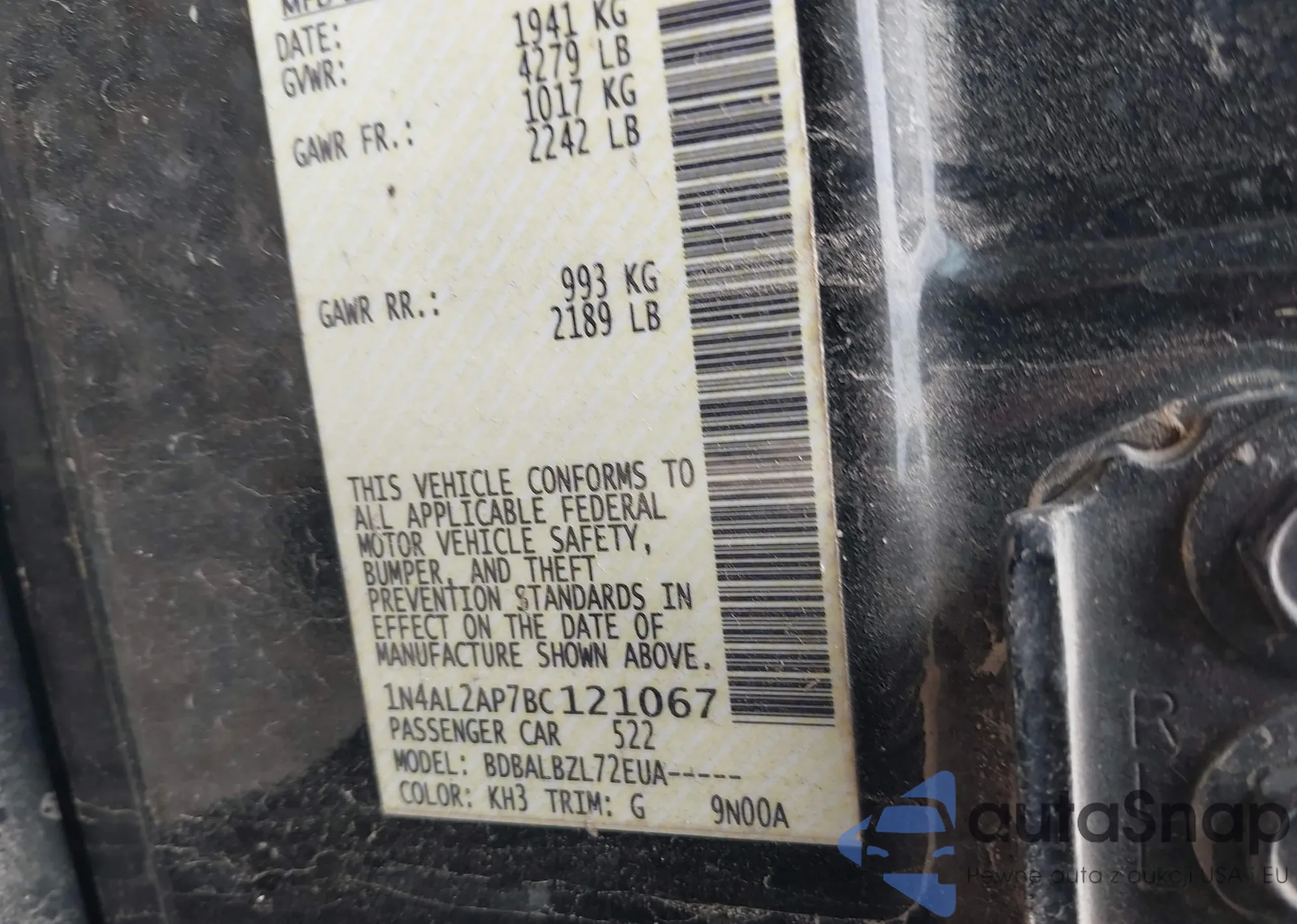• VIN 1N4AL2AP7BC121067