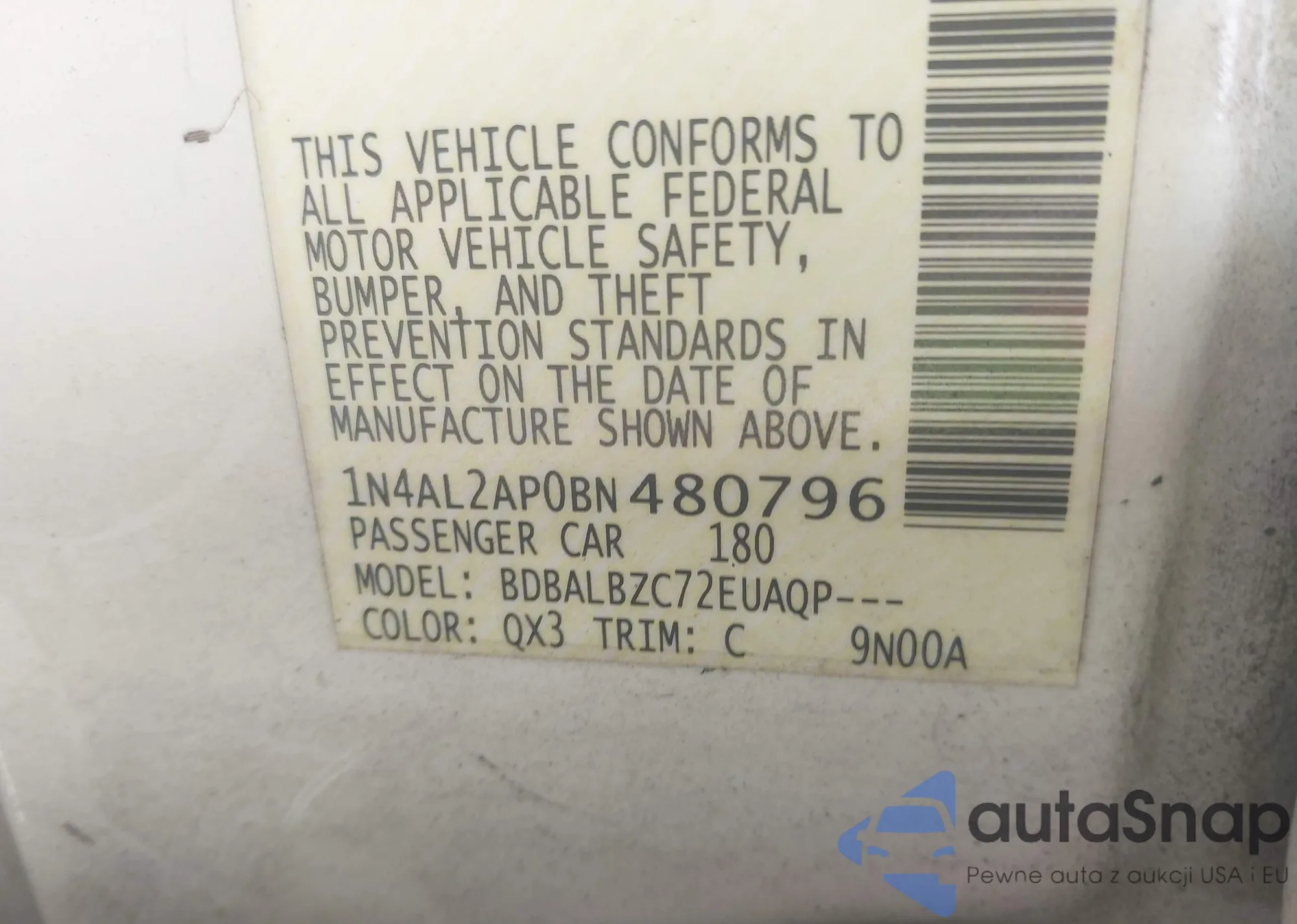 LOT: 44059334 VIN: 1N4AL2AP0BN480796