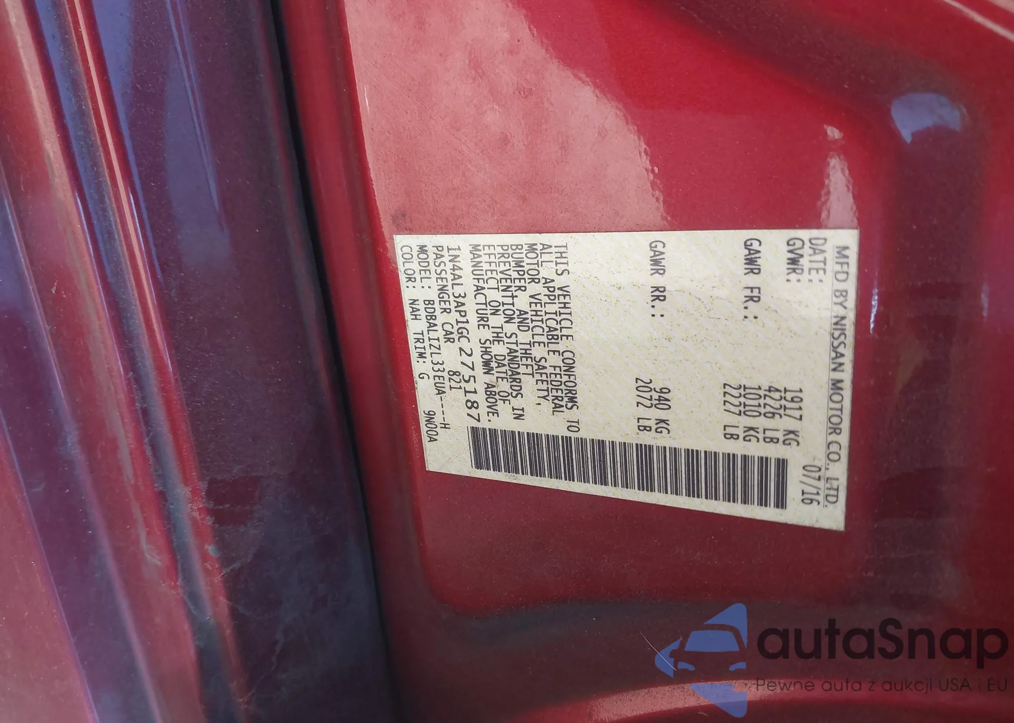 LOT: 43986048 VIN: 1N4AL3AP1GC275187