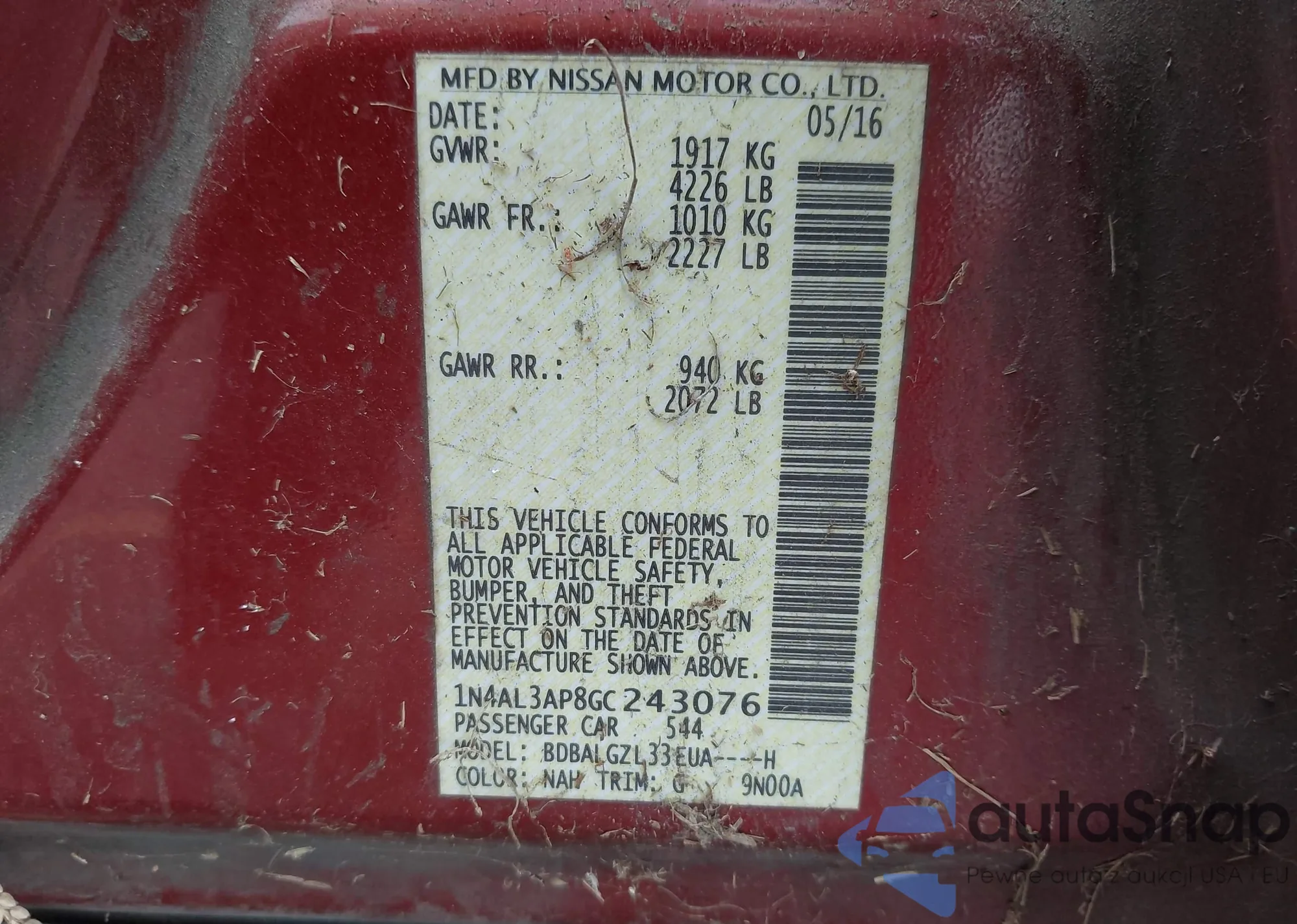 LOT: 44102455 VIN: 1N4AL3AP8GC243076