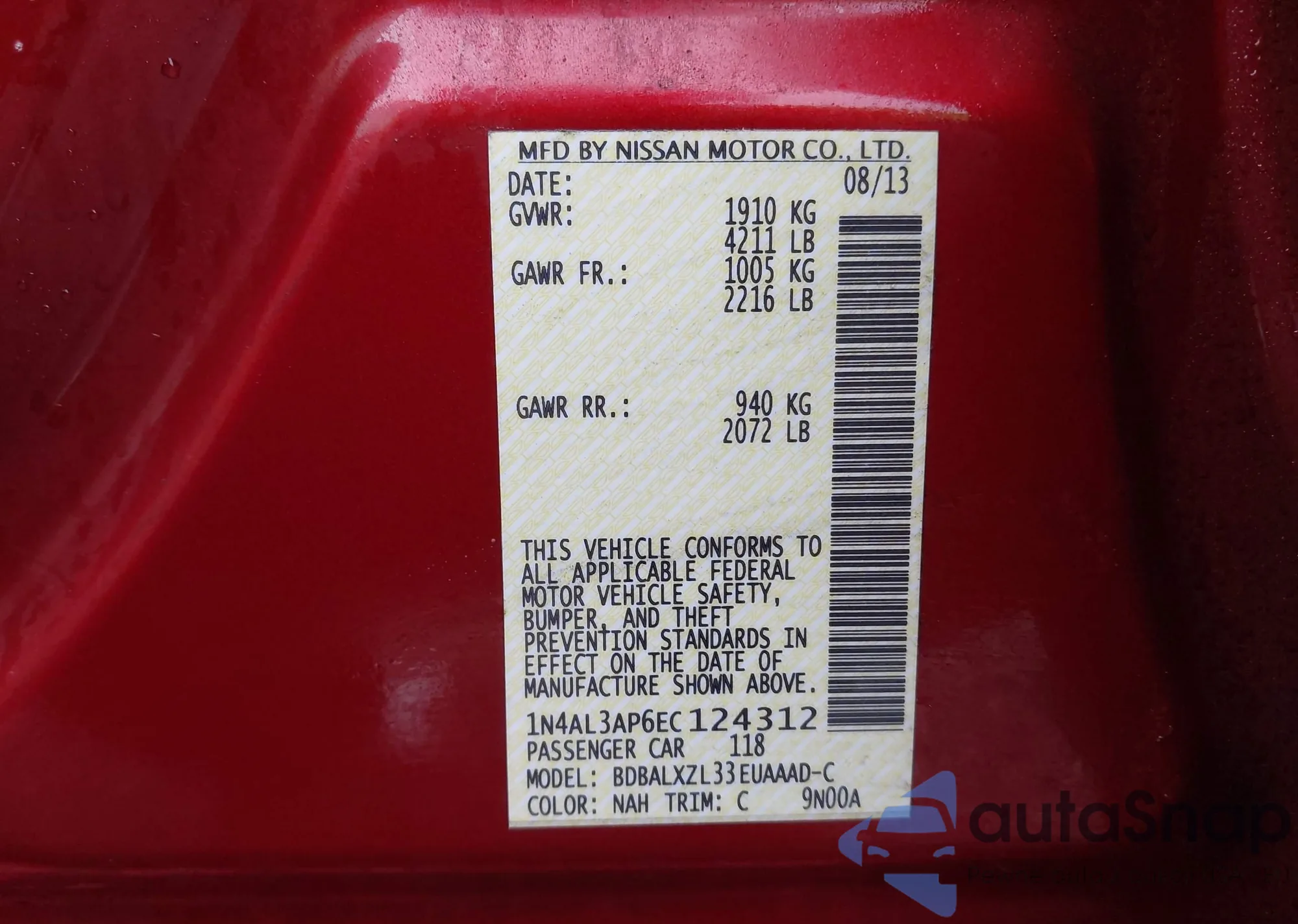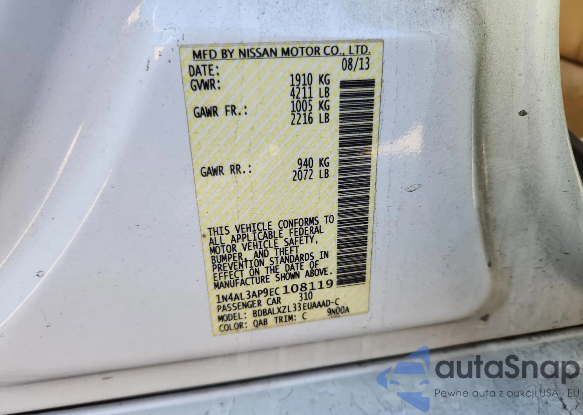 LOT: 91159635 VIN: 1N4AL3AP9EC108119