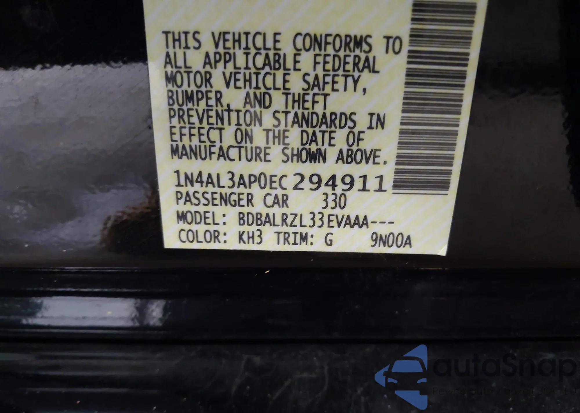 LOT: 44296871 VIN: 1N4AL3AP0EC294911