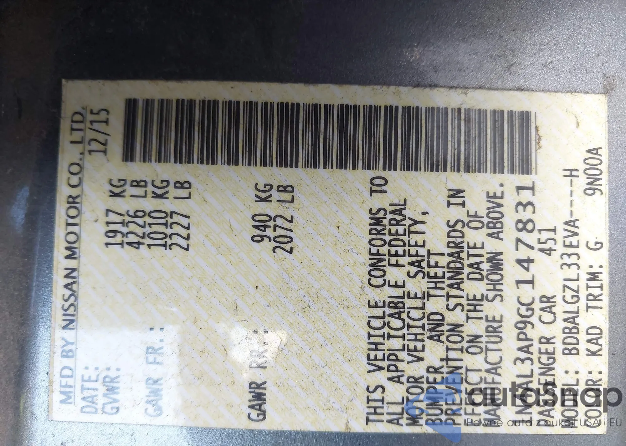 LOT: 44378949 VIN: 1N4AL3AP2FN898420