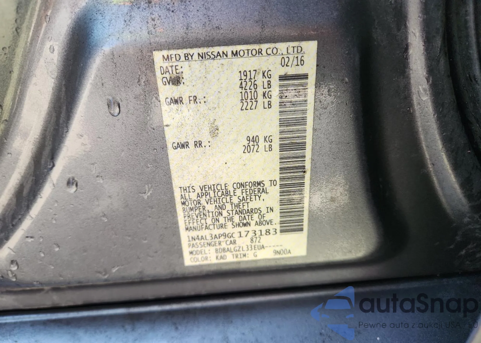 LOT: 83867945 VIN: 1N4AL3AP9GC173183