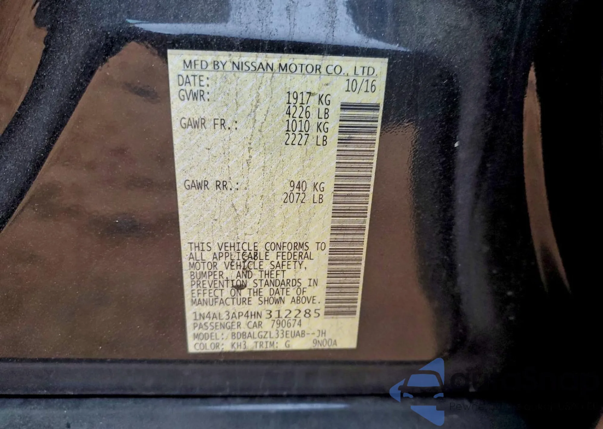 LOT: 97666715 VIN: 1N4AL3AP4HN312285