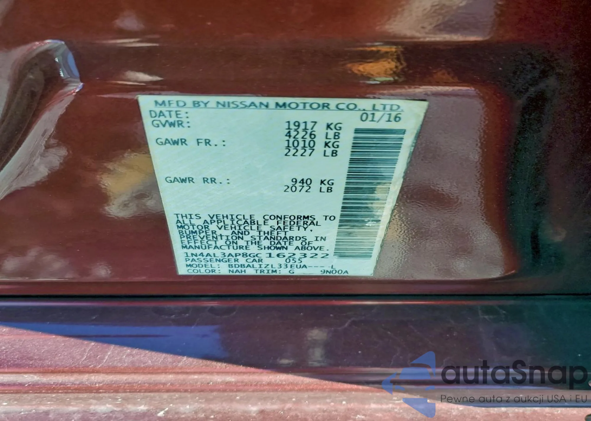 • VIN 1N4AL3AP8GC162322
