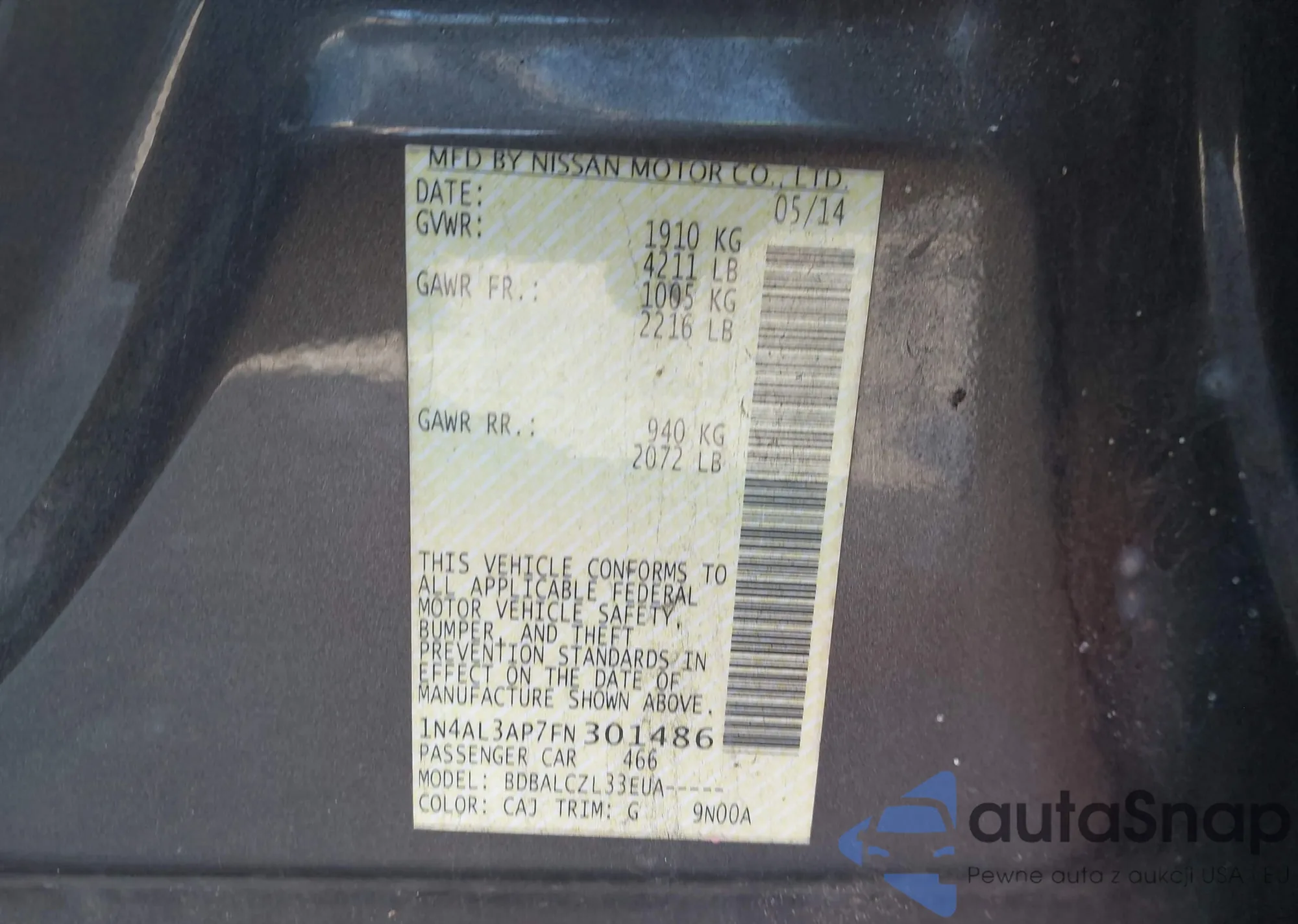 • VIN 1N4AL3AP7FN301486