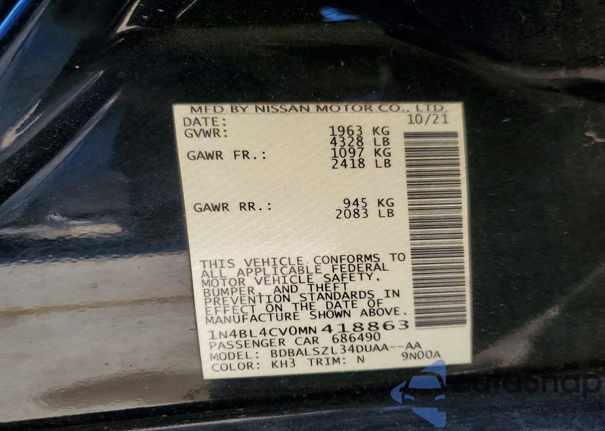 • VIN 1N4BL4CV0MN418863