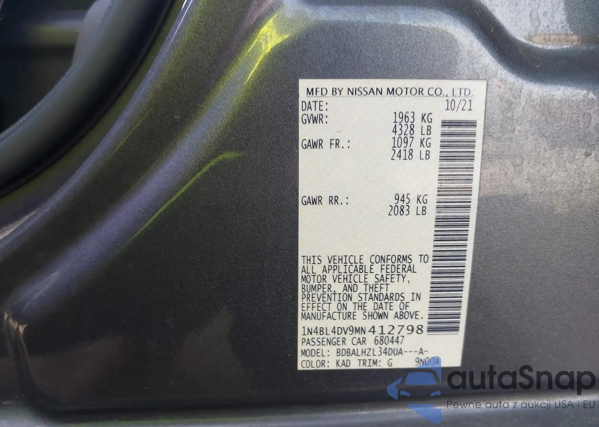 • VIN 1N4BL4DV9MN412798