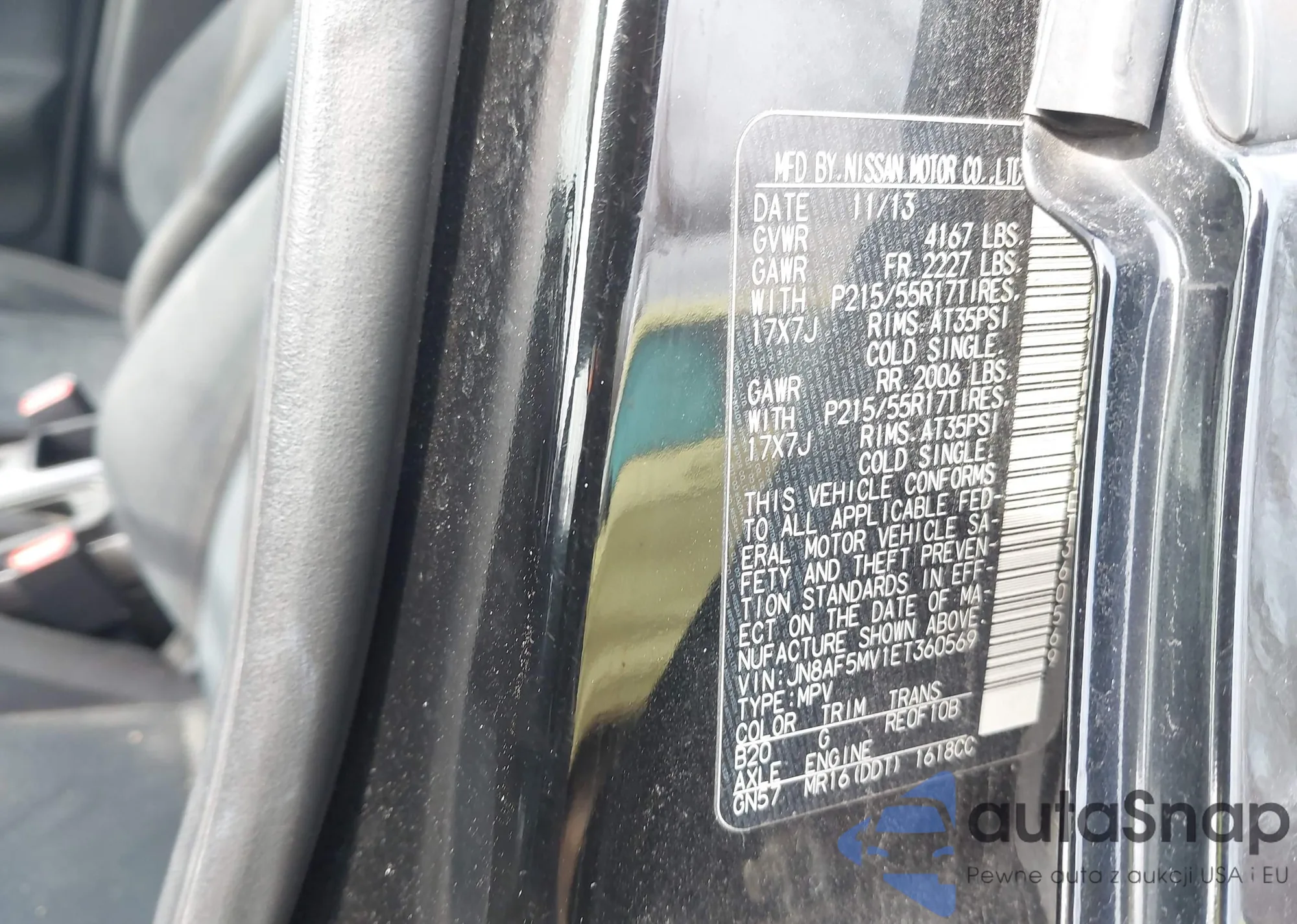 • VIN JN8AF5MV1ET360569