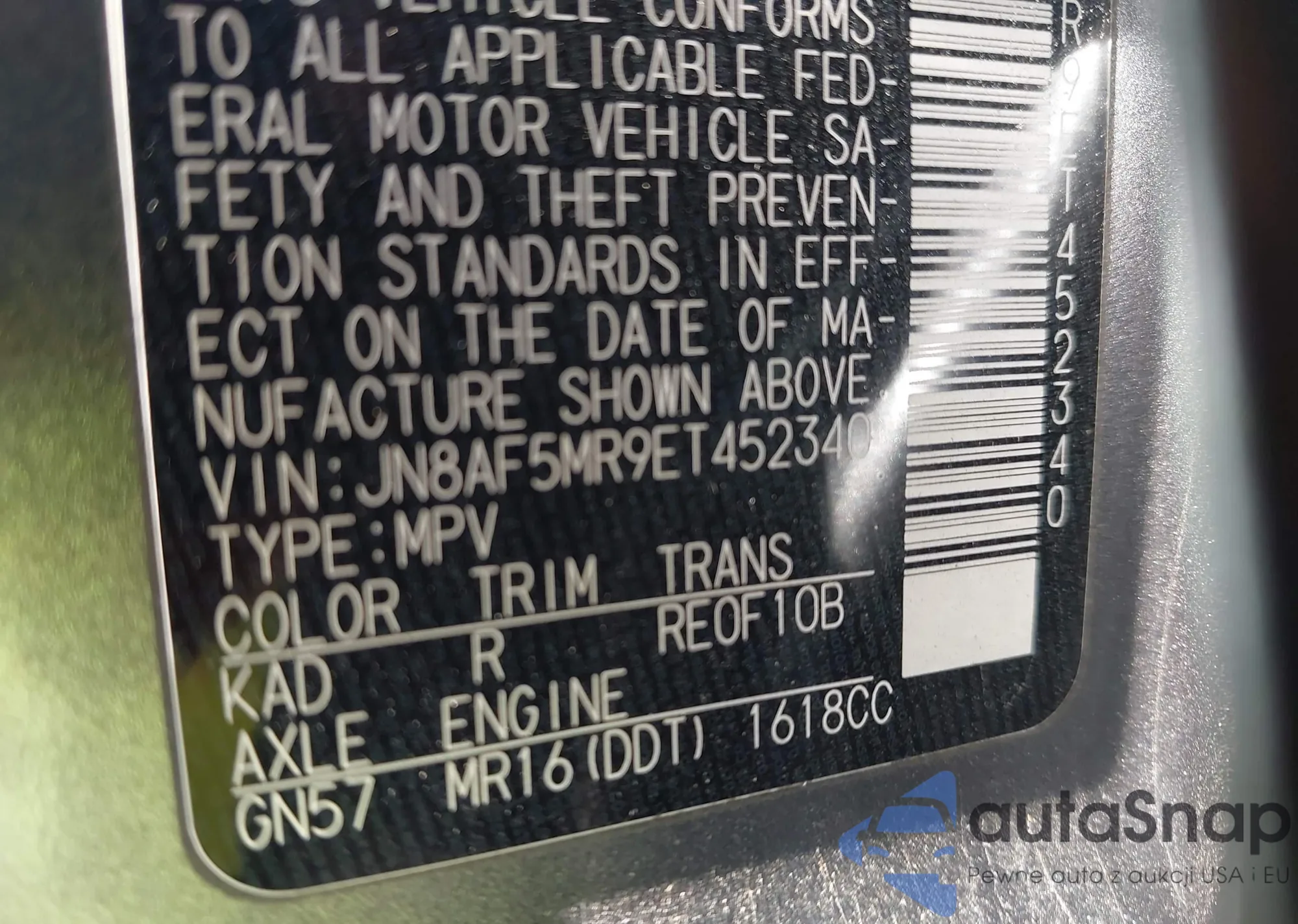 • VIN JN8AF5MR9ET452340