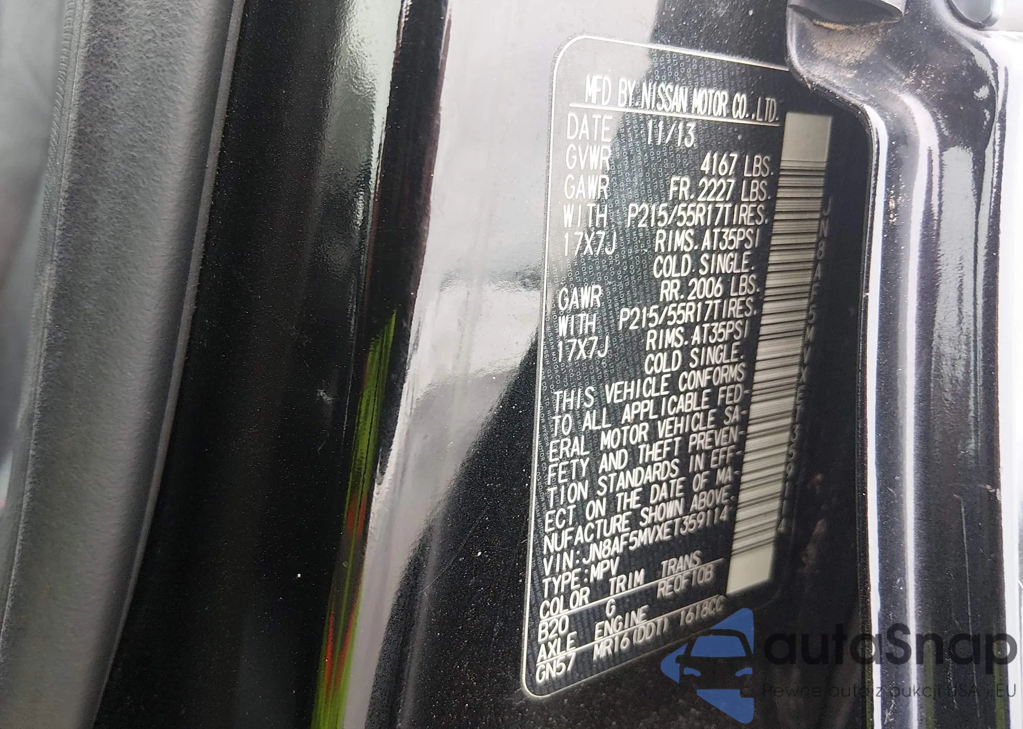 LOT: 44414538 VIN: JN8AF5MVXET359114