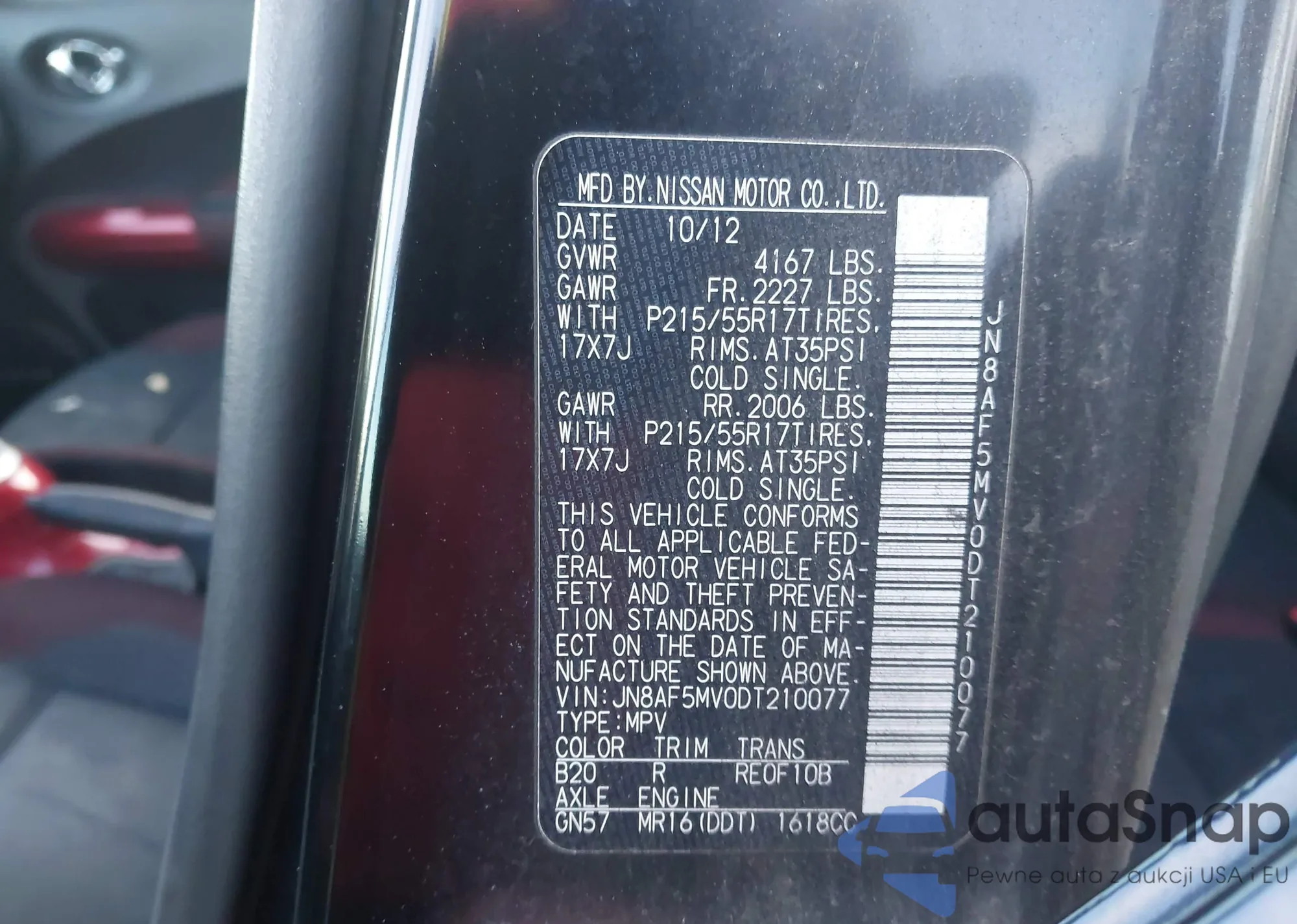 • VIN JN8AF5MV0DT210077