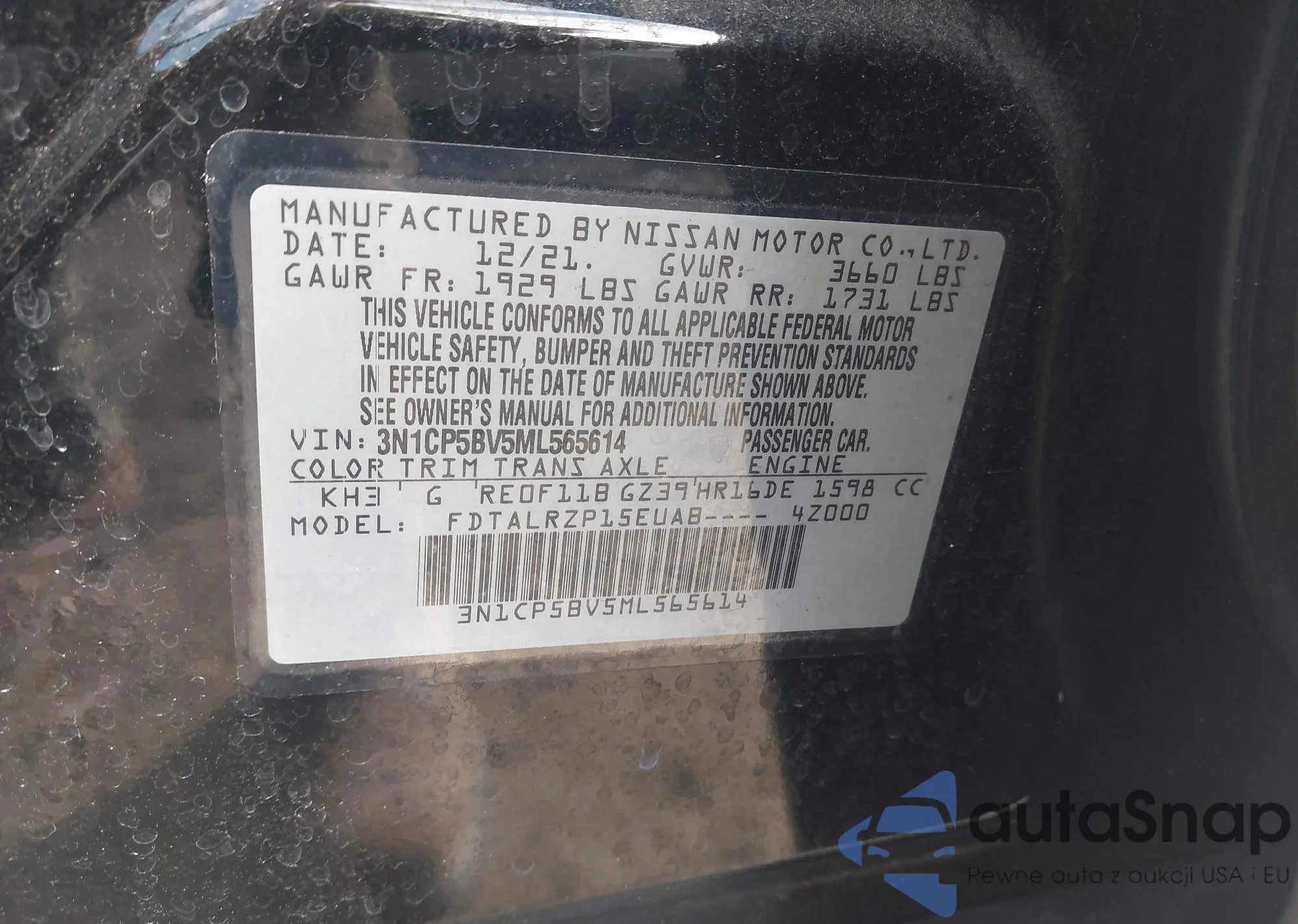 • VIN 3N1CP5BV5ML565614