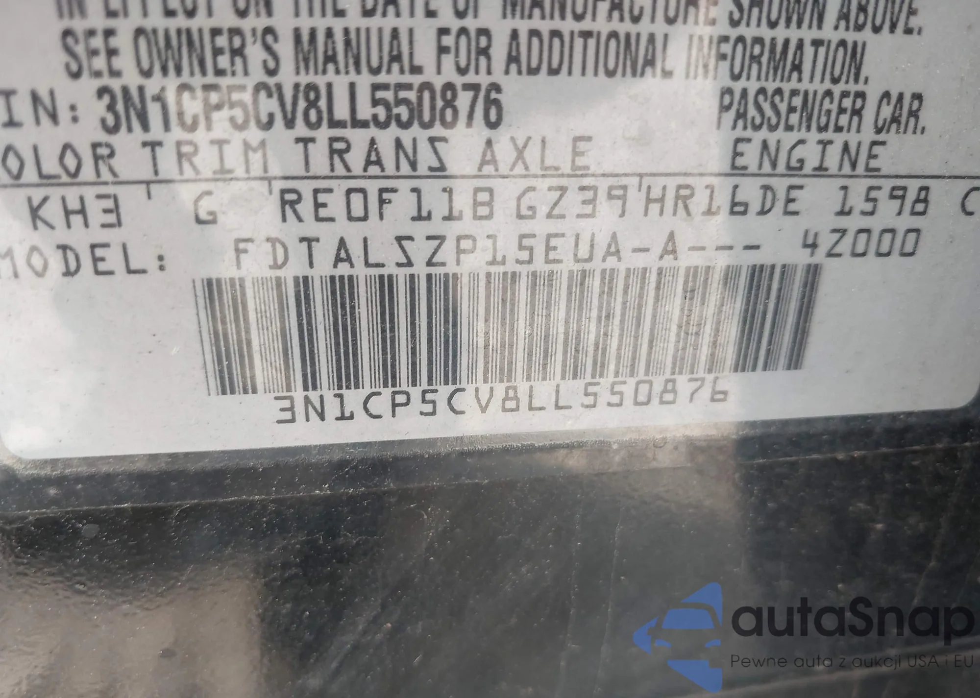 • VIN 3N1CP5CV8LL550876