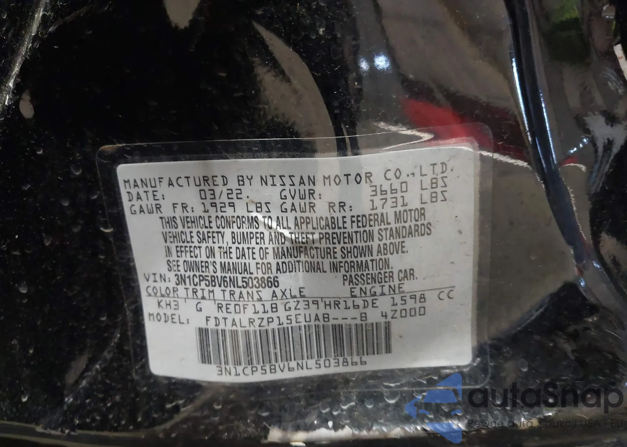 • VIN 3N1CP5BV6NL503866