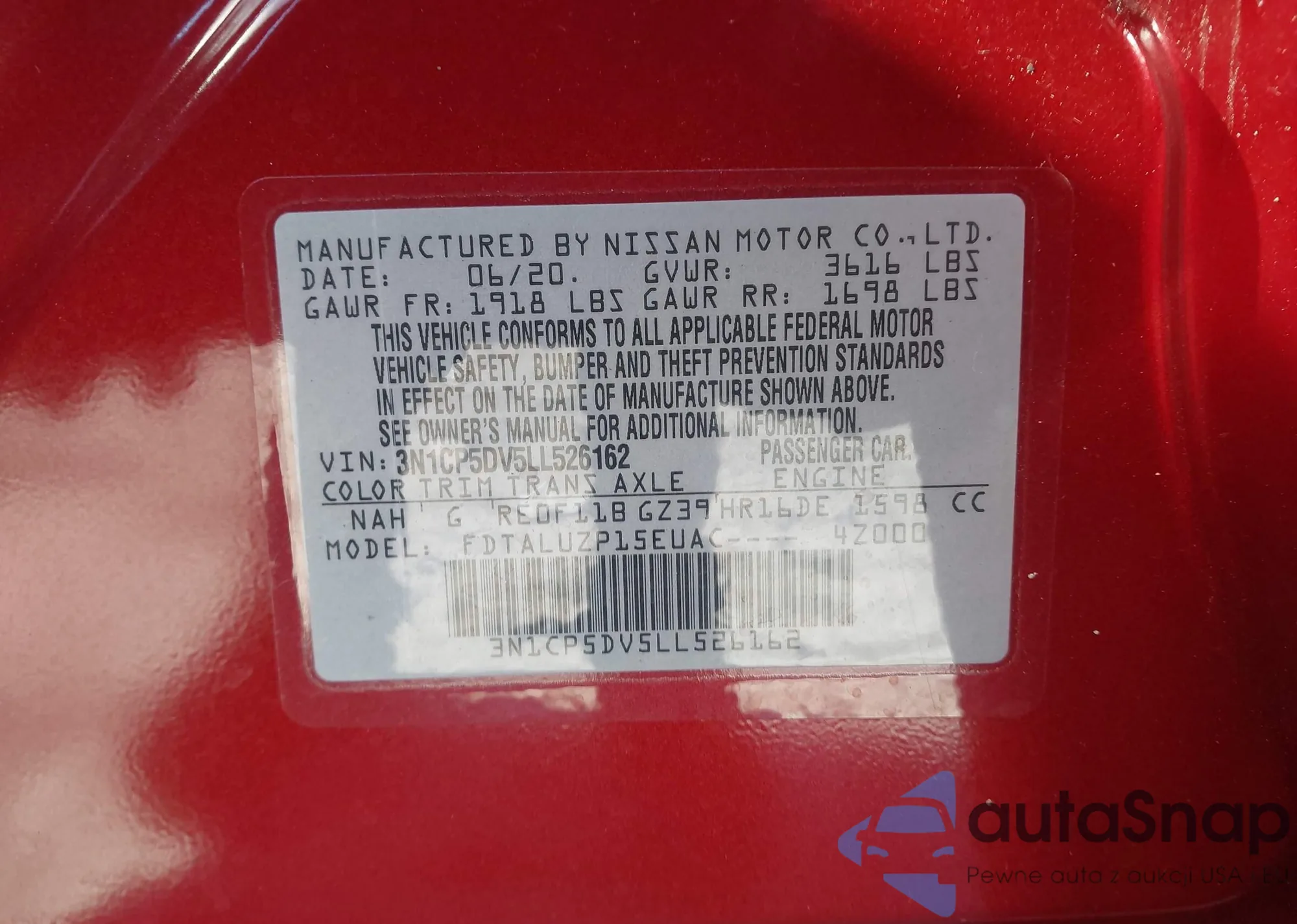 • VIN 3N1CP5DV5LL526162