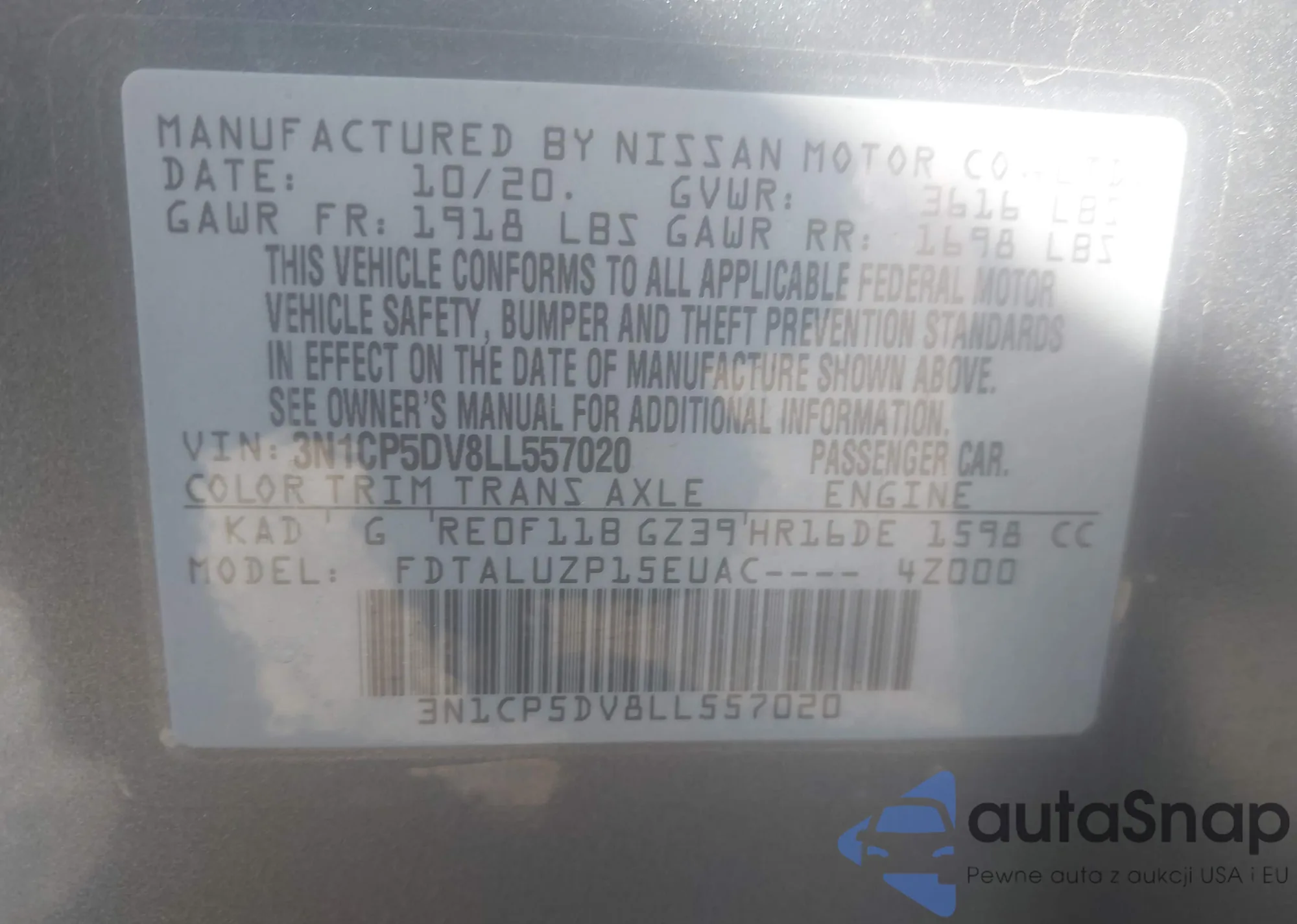 • VIN 3N1CP5DV8LL557020