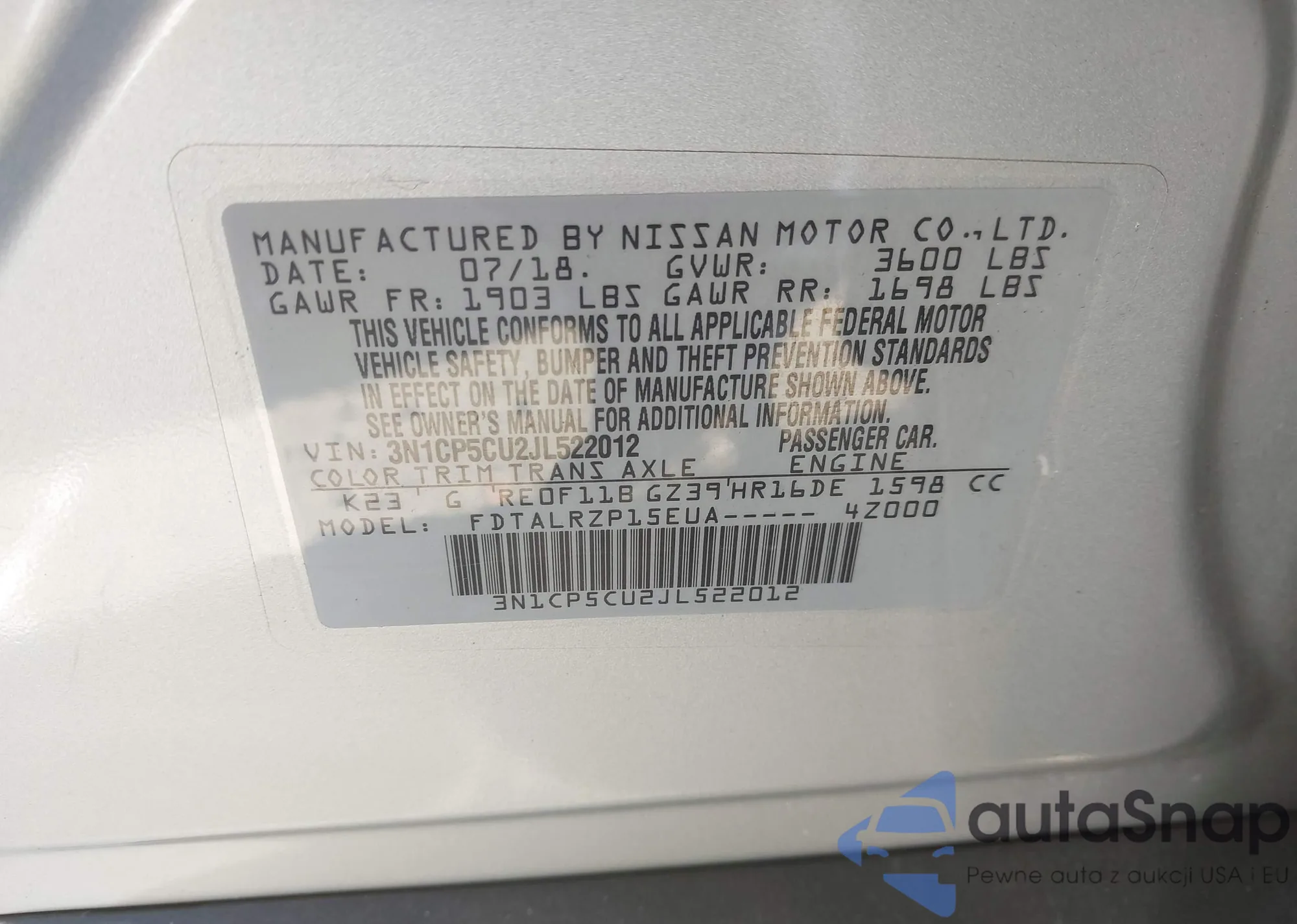 • VIN 3N1CP5CU2JL522012