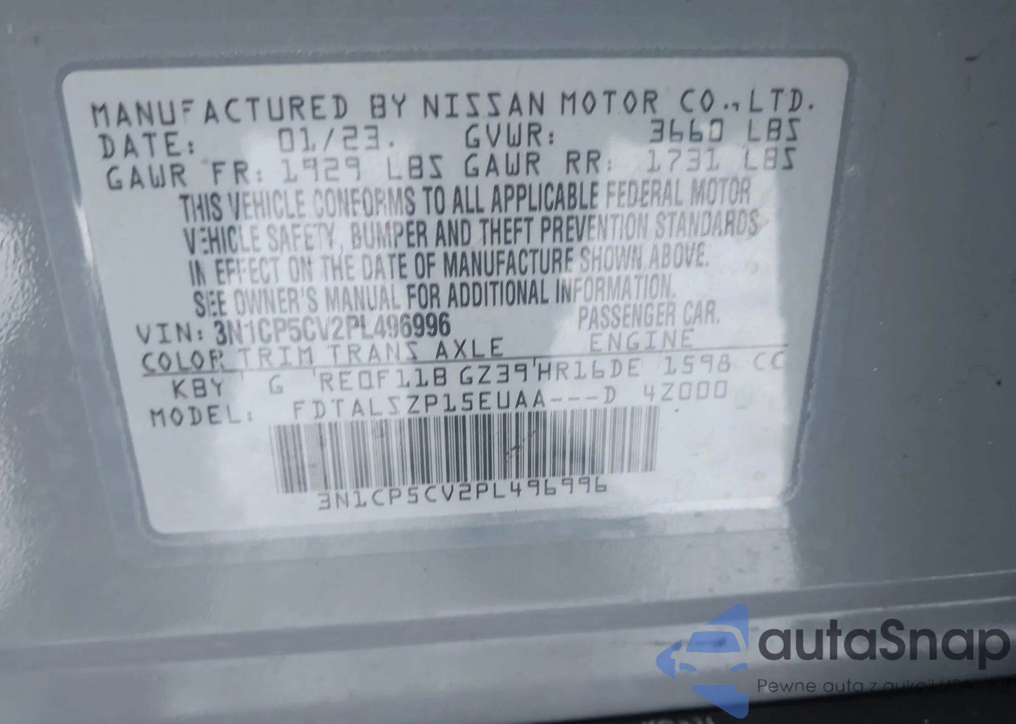 • VIN 3N1CP5CV2PL496996