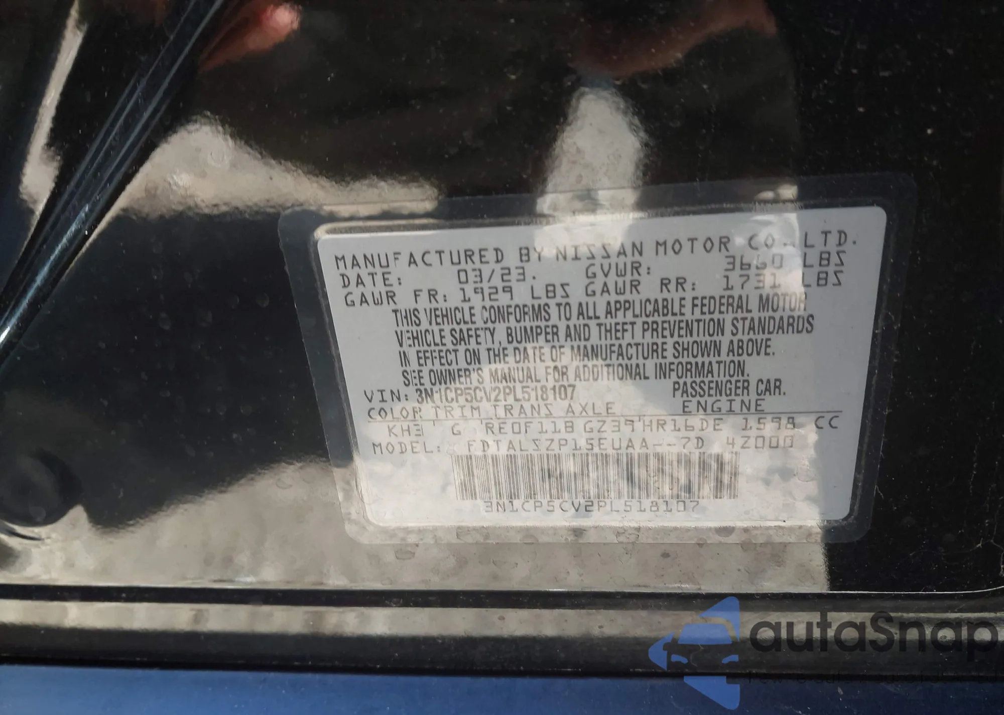 LOT: 43847200 VIN: 3N1CP5CV2PL518107