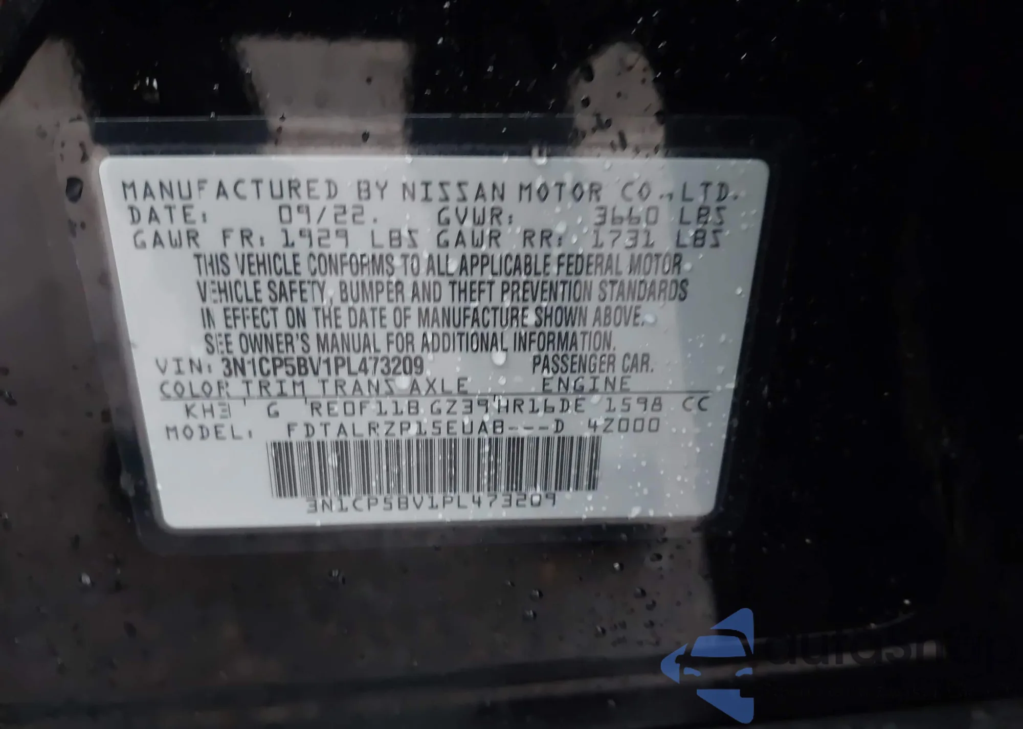 • VIN 3N1CP5BV1PL473209