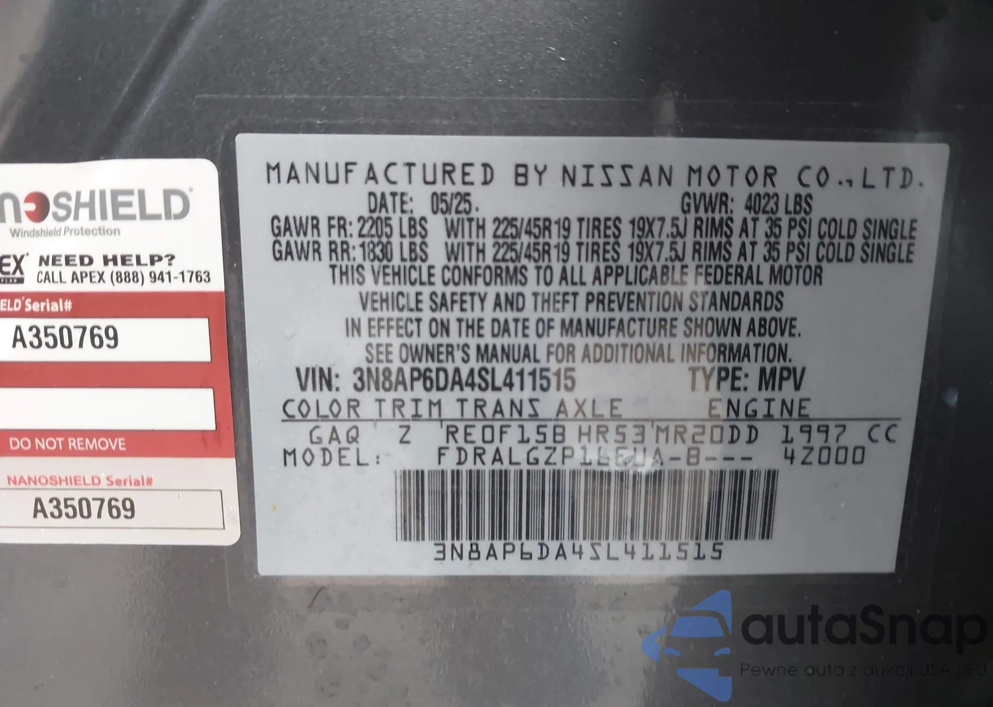 • VIN 3N8AP6DA4SL411515