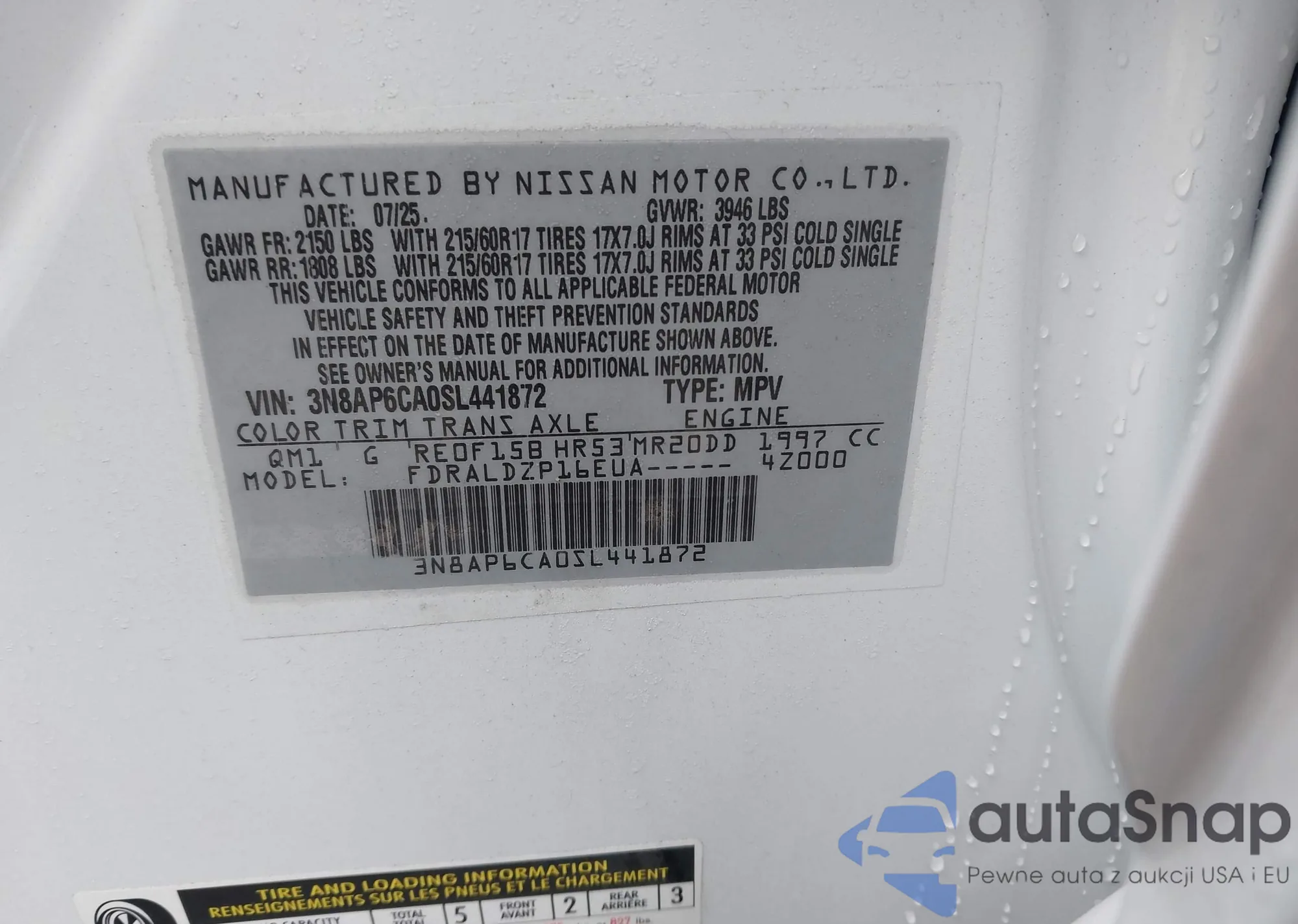 • VIN 3N8AP6CA0SL441872