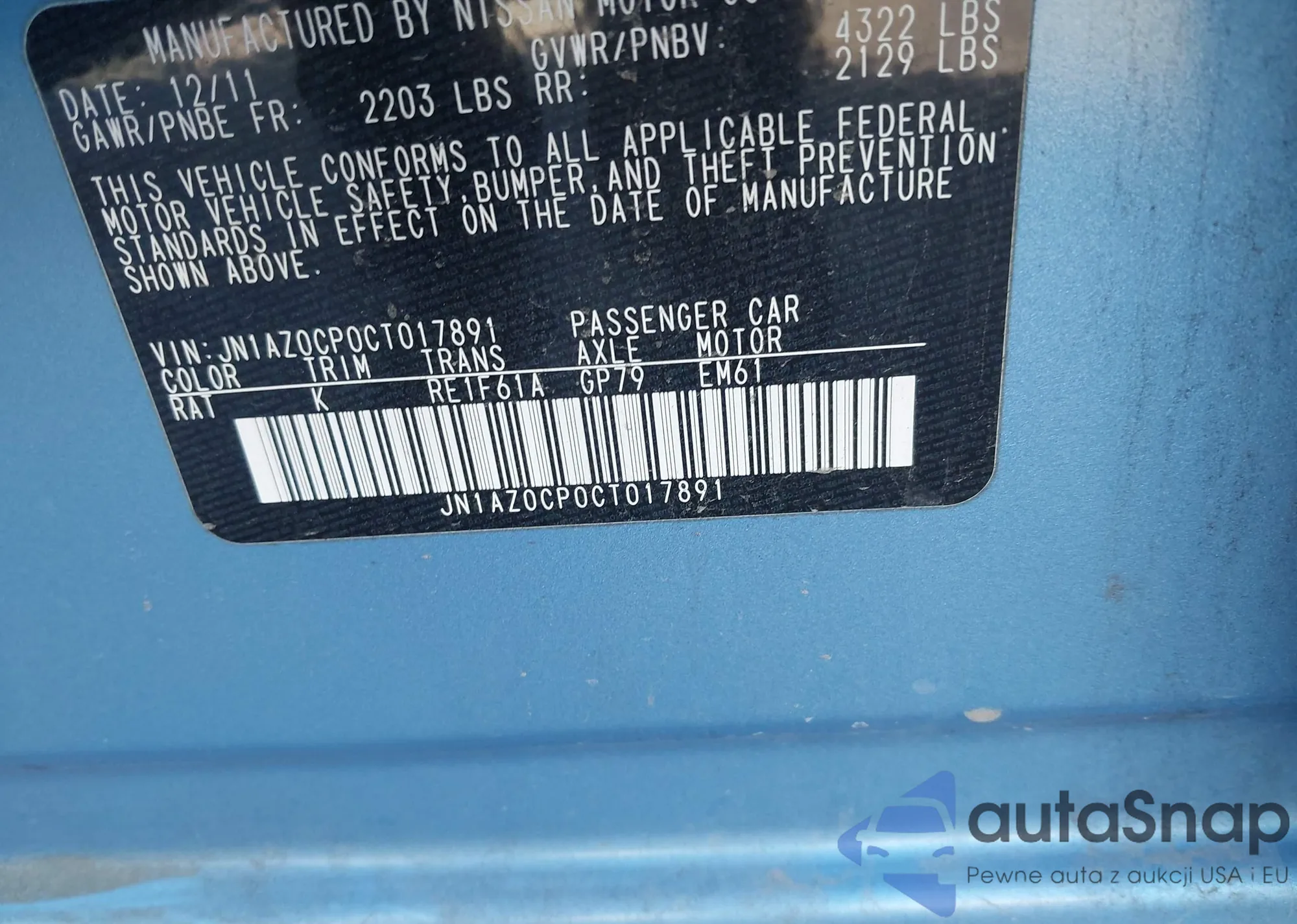 LOT: 43805494 VIN: JN1AZ0CP0CT017891