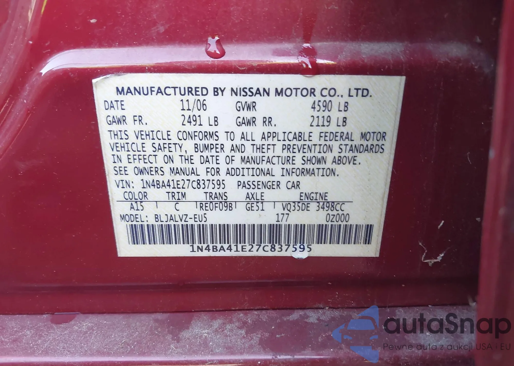 LOT: 40830994 VIN: 1N4BA41E27C837595