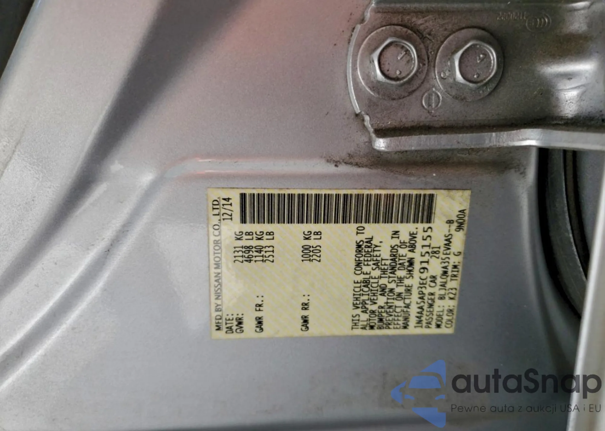 LOT: 93242515 VIN: 1N4AA5AP3EC915155