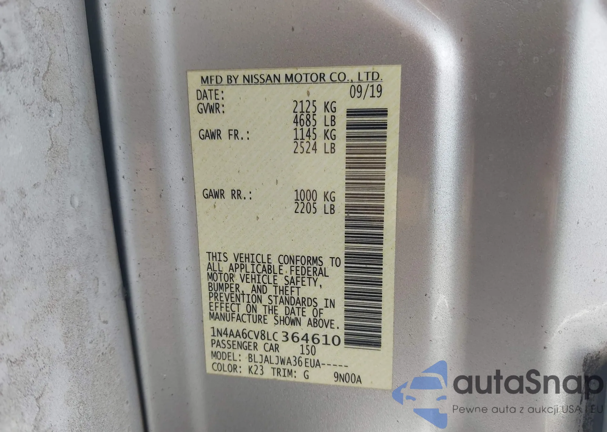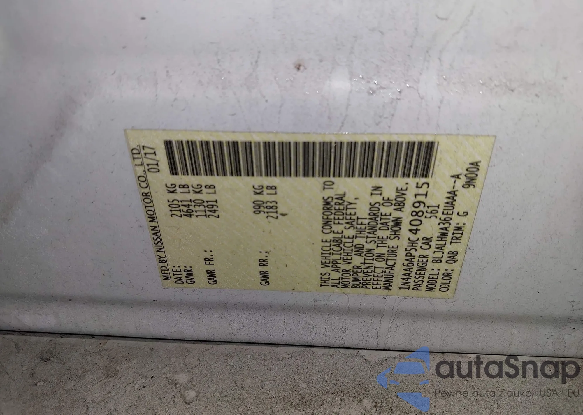 LOT: 43690424 VIN: 1N4AA6AP1JC378902