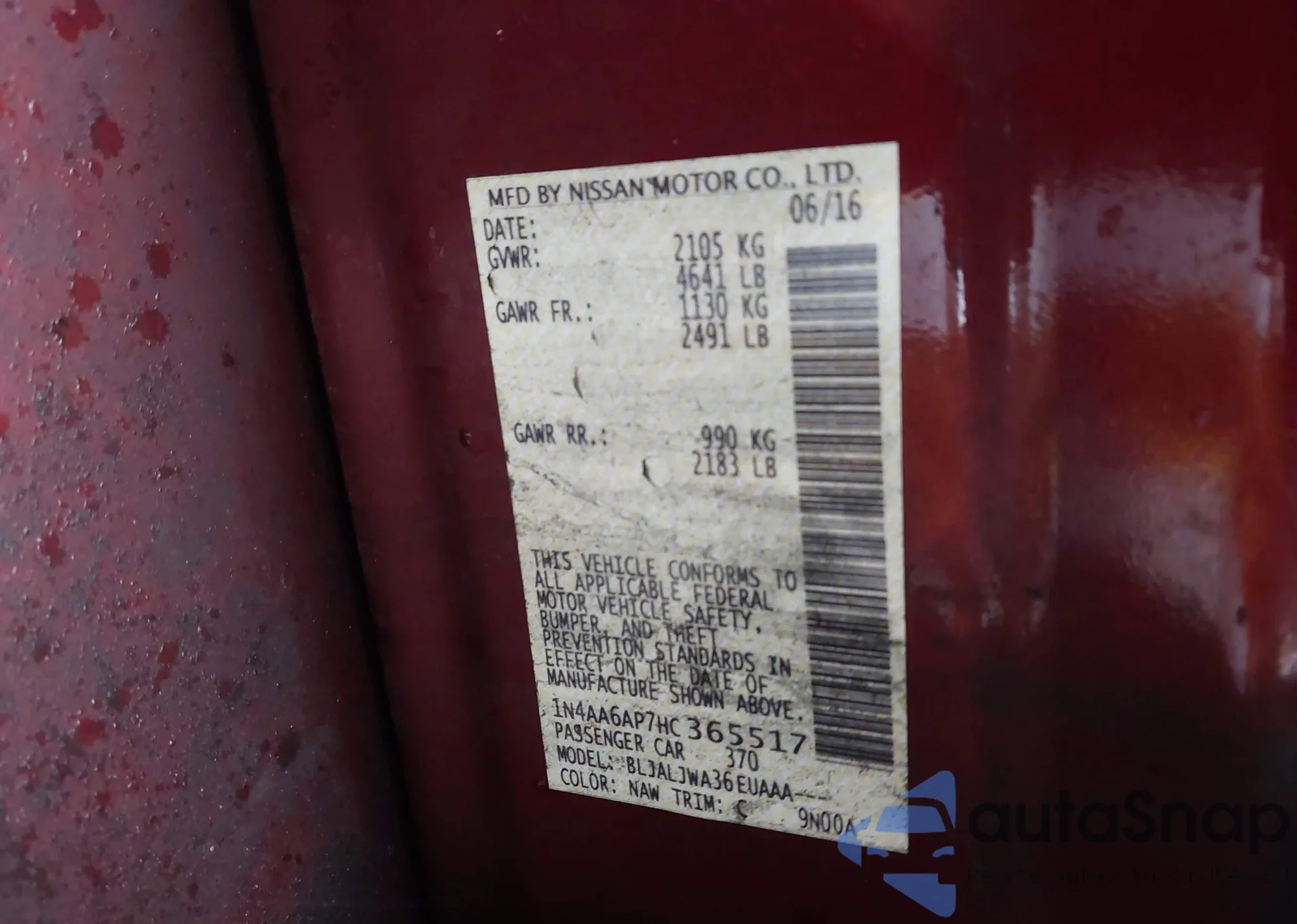 LOT: 97007245 VIN: 1N4AA6AP6HC436447