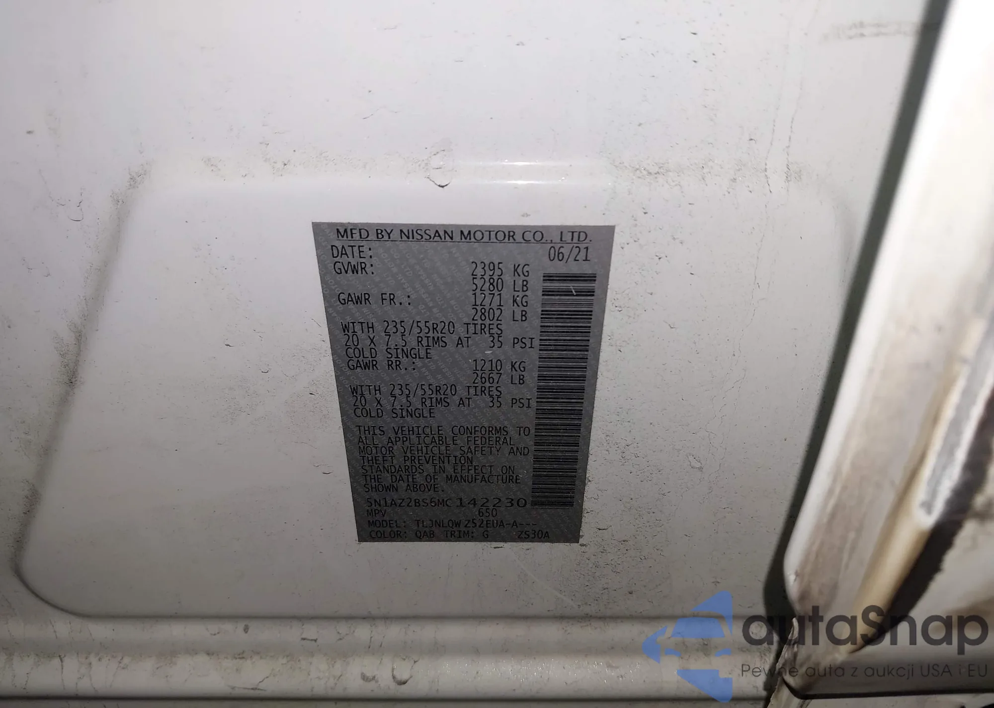 LOT: 44008668 VIN: 5N1AZ2DS7MC118547