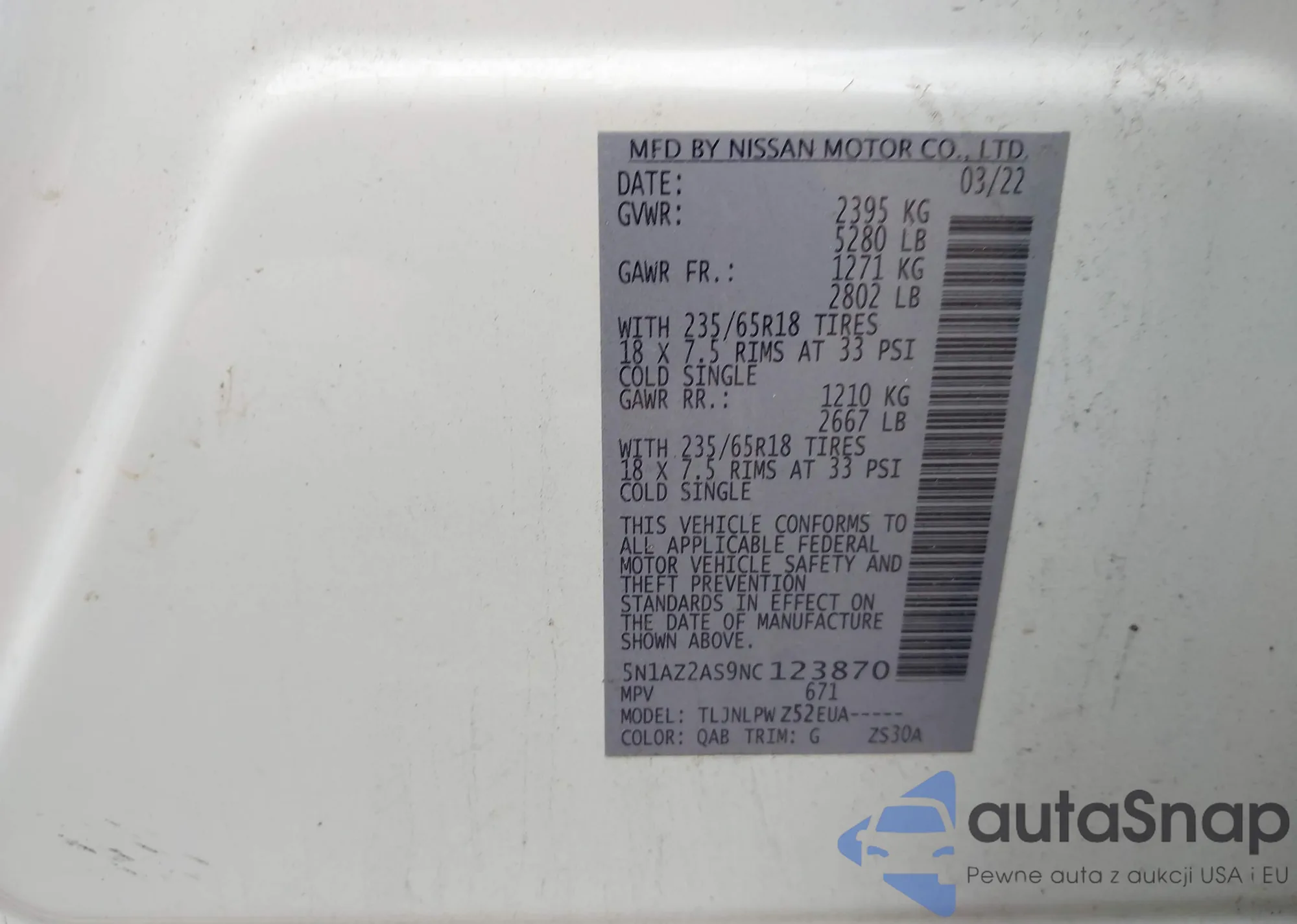 • VIN 5N1AZ2AS9NC123870