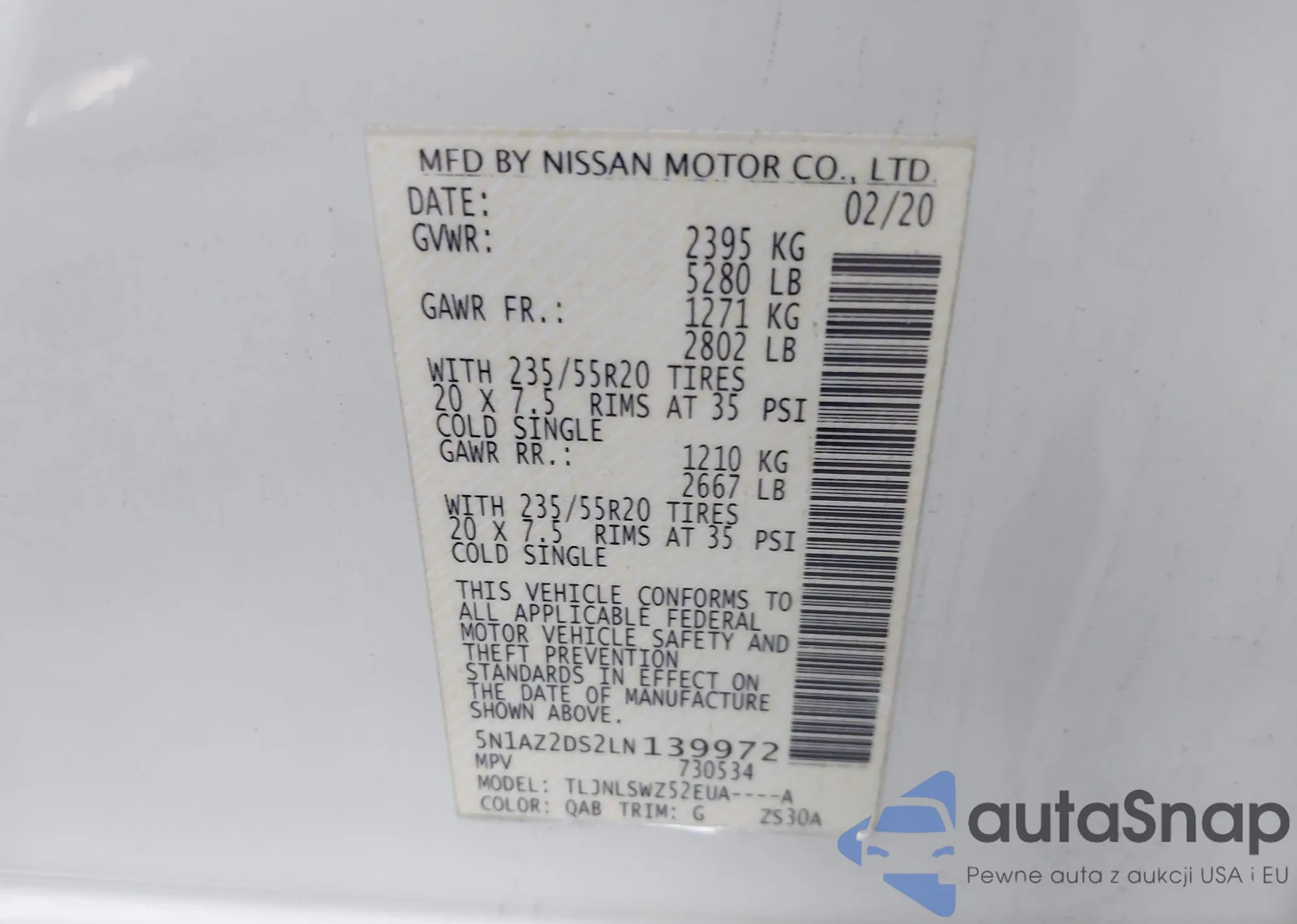 • VIN 5N1AZ2DS2LN139972