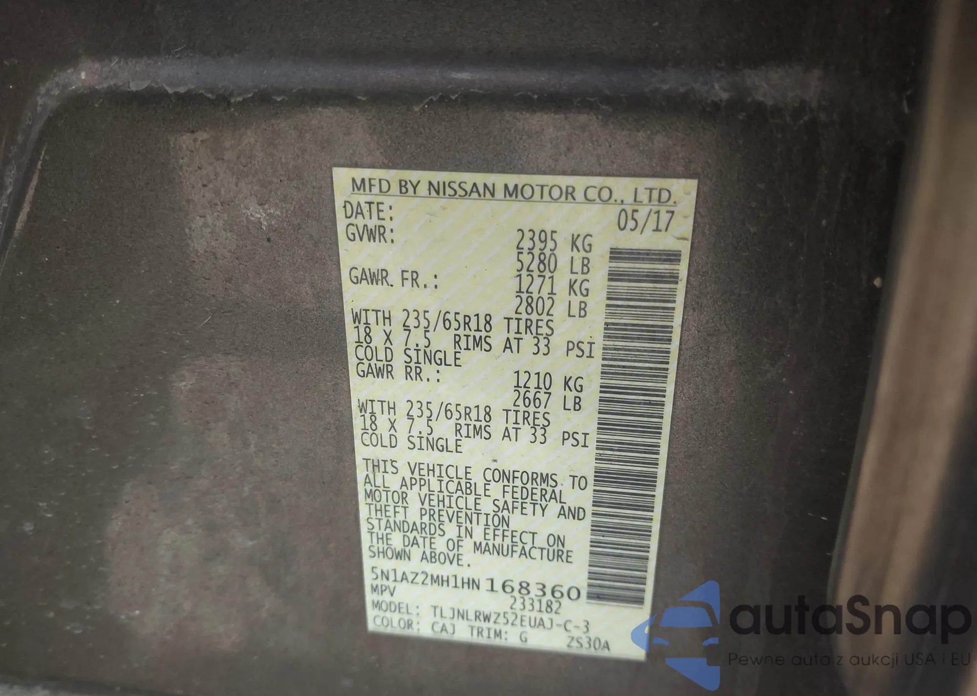 • VIN 5N1AZ2MH1HN168360